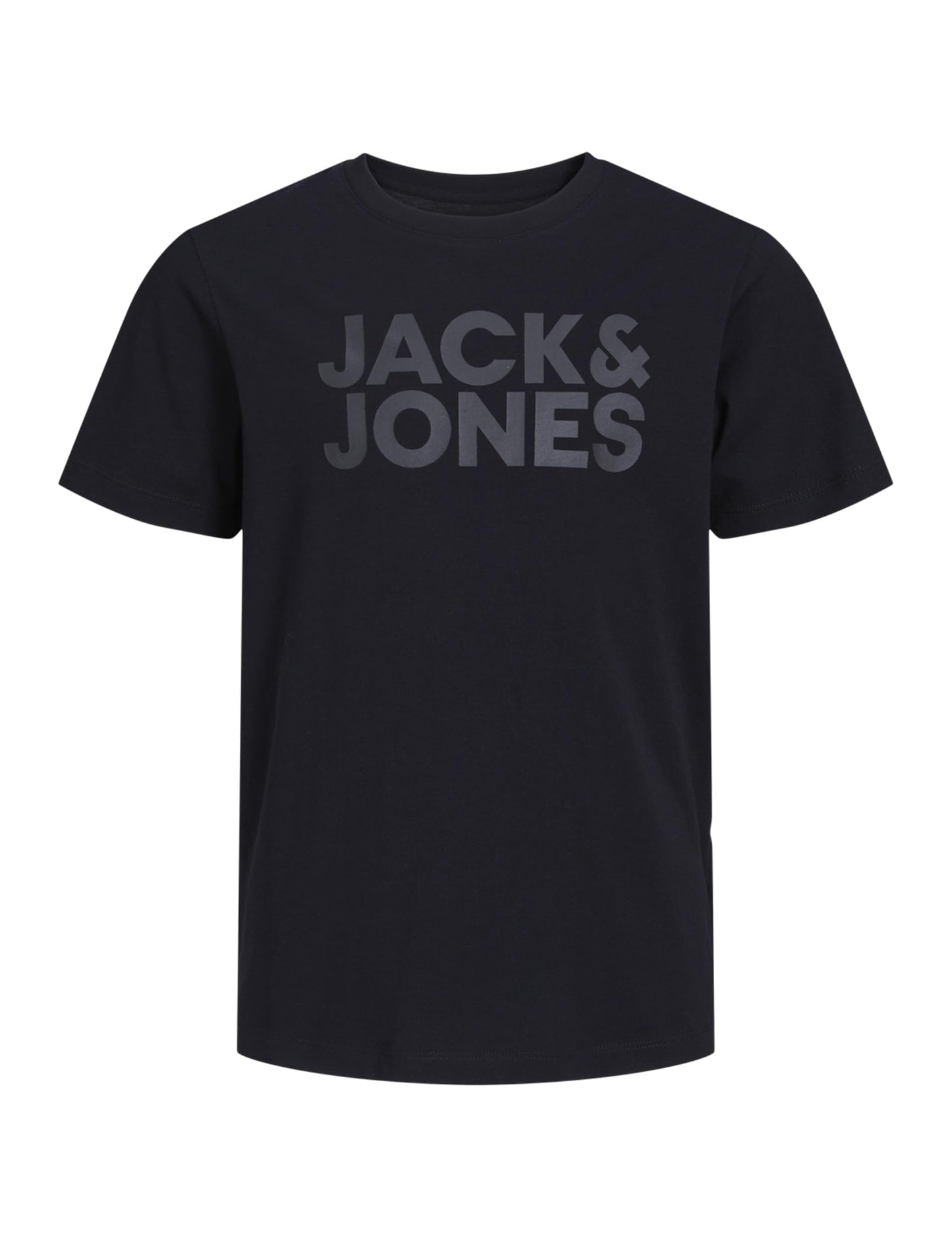 Lässiges T-Shirt mit Rundhalsausschnitt und kurzen Armen von JACK & JONES JUNIOR, großer Logo-Schriftzug vorn, hoher Tragekomfort durch Herstellung aus 100% Baumwolle