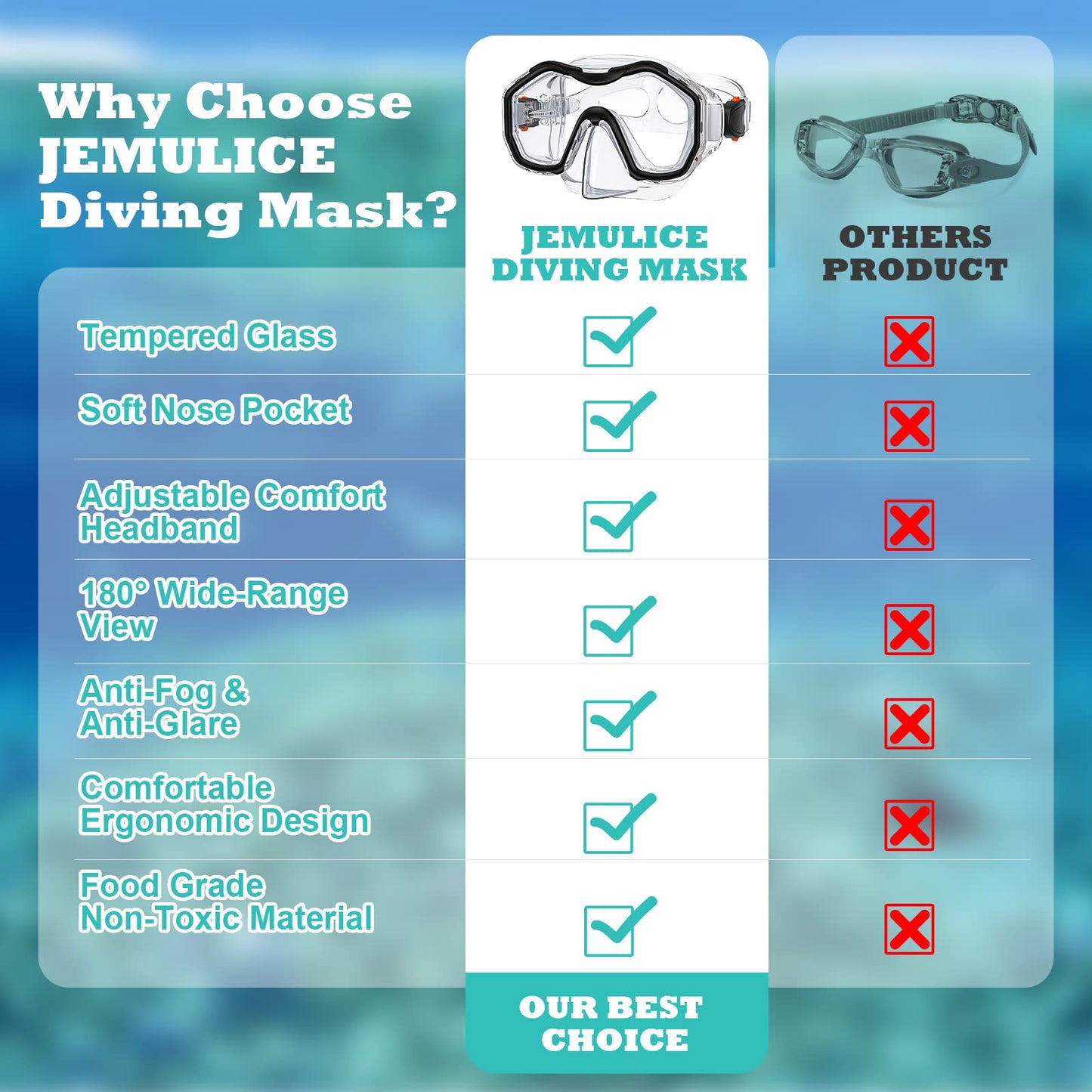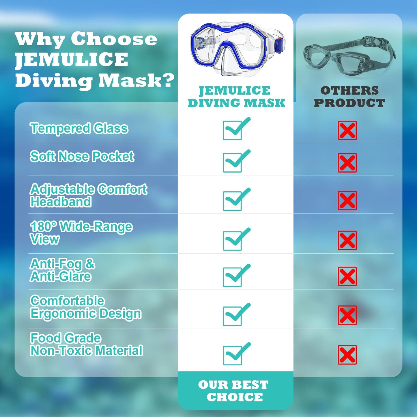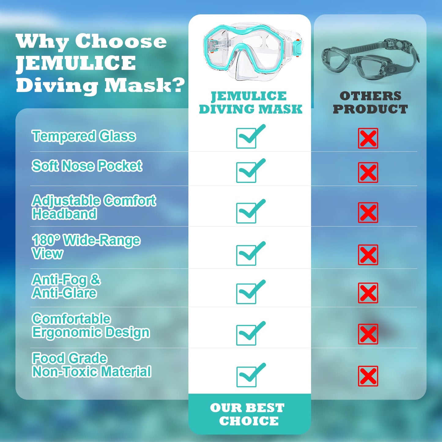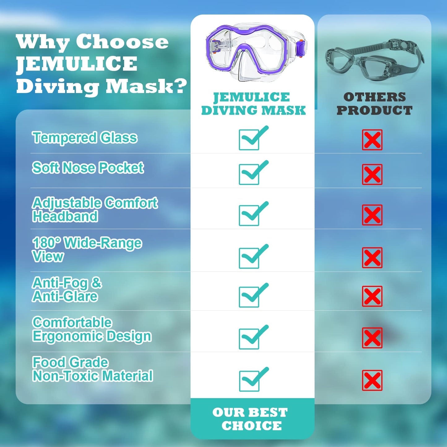 Die JEMULICE Taucherbrille ist mit fortschrittlicher Anti-Beschlag-Technologie ausgestattet. Dies bedeutet, dass die Sicht auch bei längerem Tragen klar bleibt, ohne durch Beschlagen der Gläser beeinträchtigt zu werden. Außerdem wurde diese Schwimmmaske so konstruiert, dass sie perfekt am Gesicht der Kinder anliegt und somit ein Eindringen von Wasser verhindert wird. Die Produkteigenschaften umfassen:
