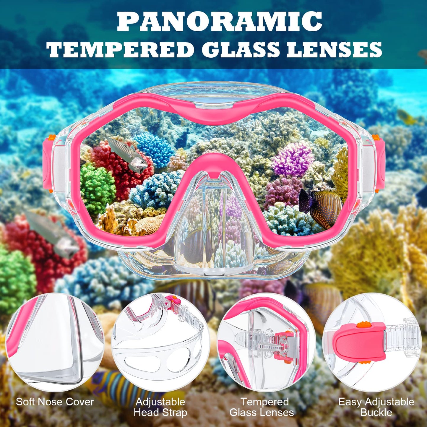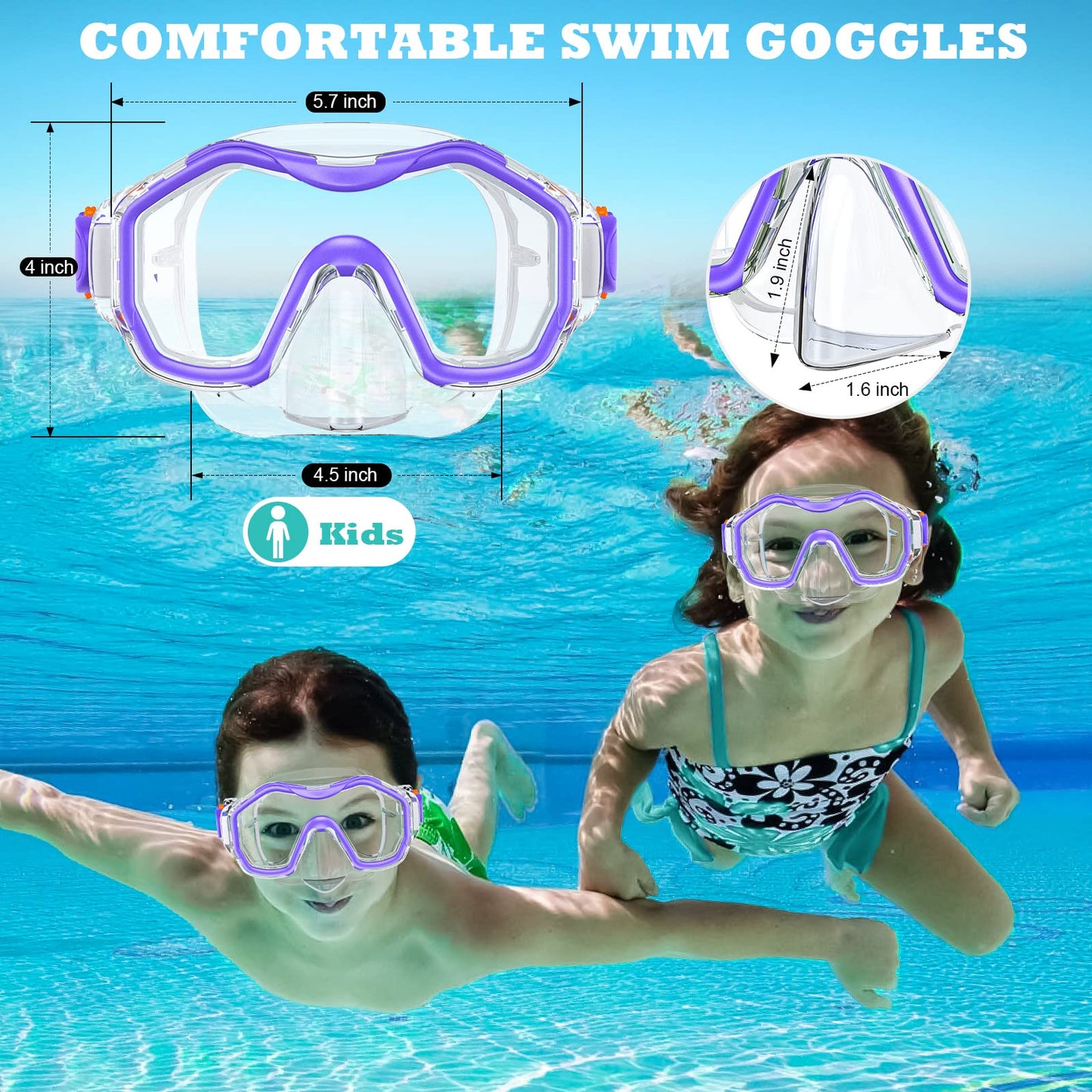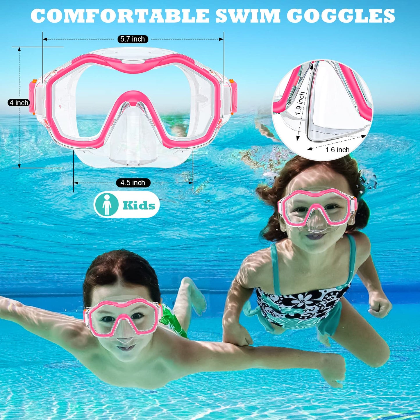 JEMULICE Taucherbrille Kinder, Schwimmbrille Kinder Schnorchelmaske für Jungen Mädchen, Tauchmaske mit Nasenabdeckung 180°Panorama HD Anti Nebel Anti-Leck Schwimmmaske für Kinder 4-16 Jahre