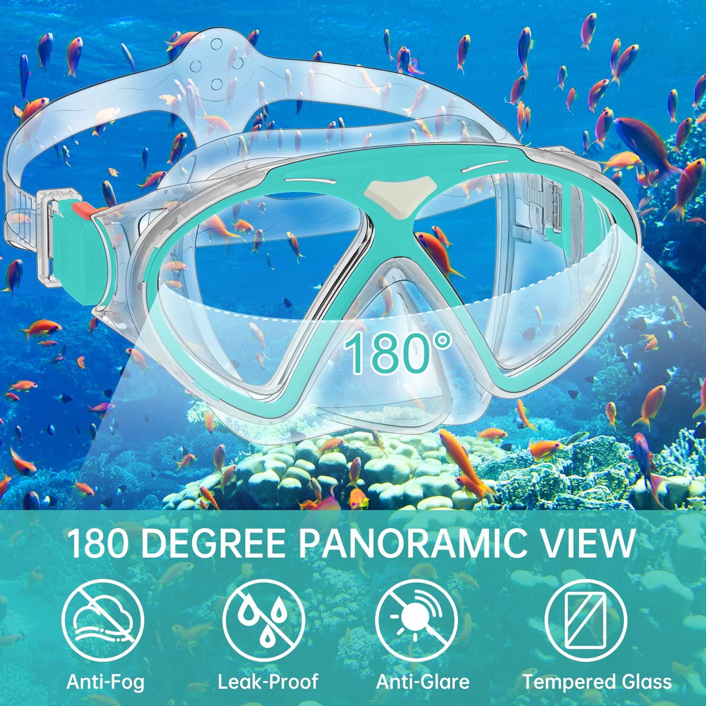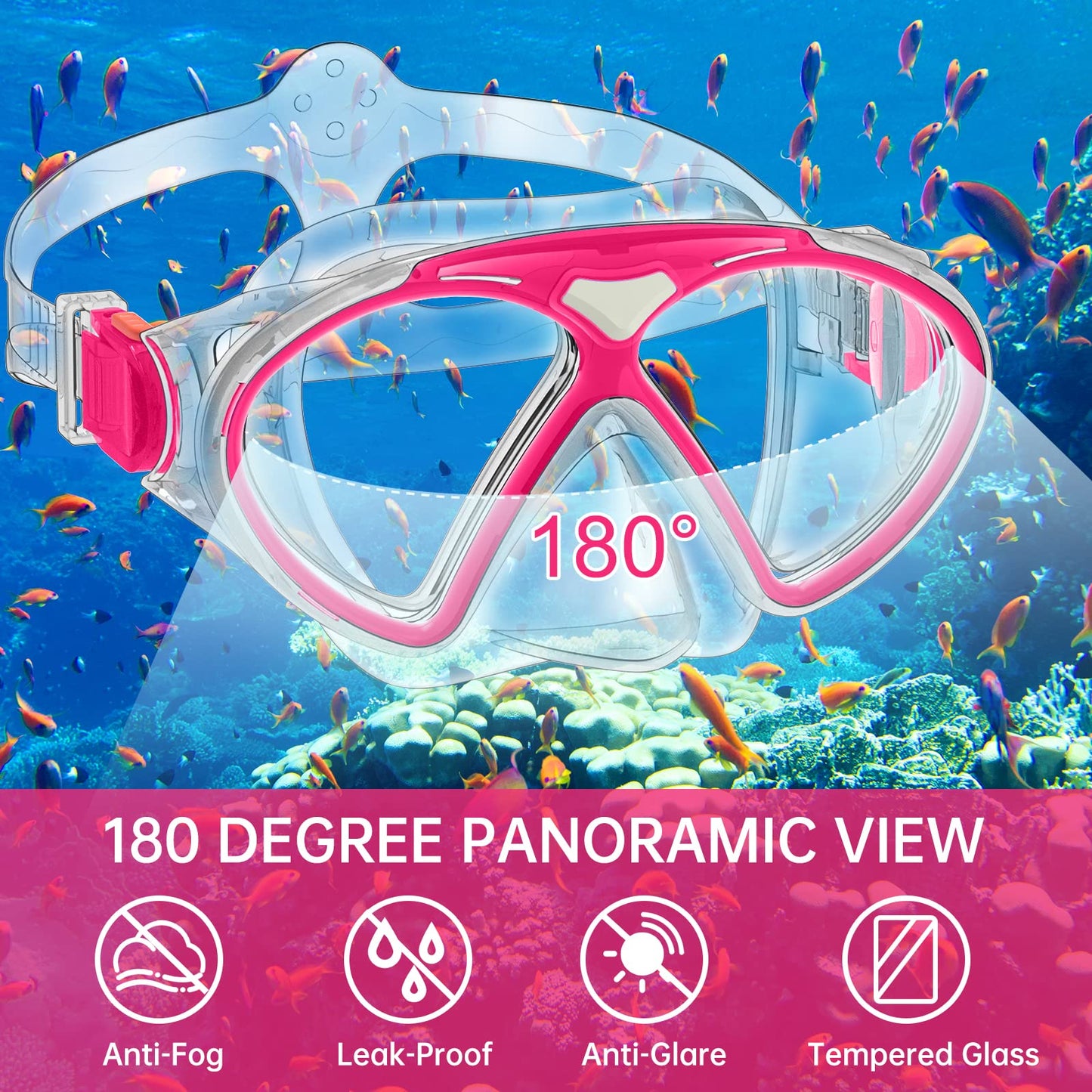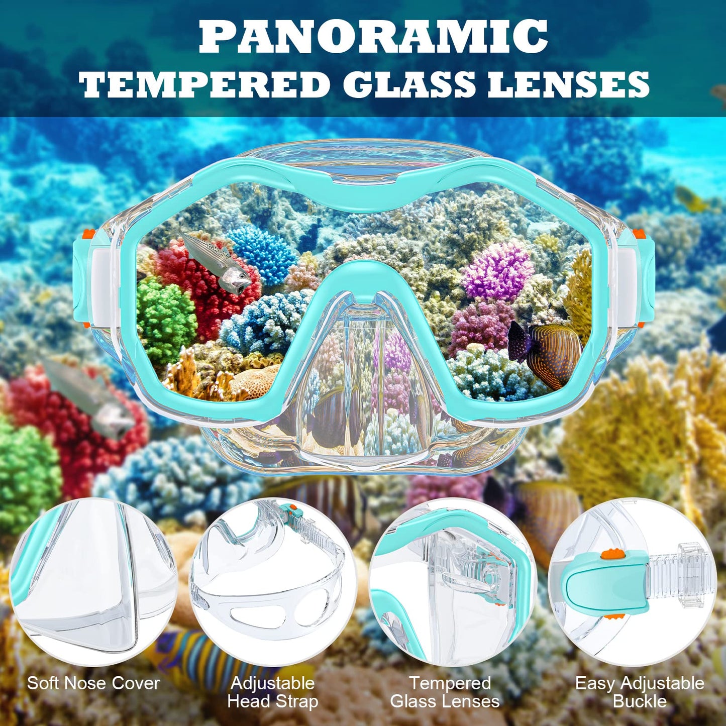 JEMULICE Taucherbrille Kinder, Schwimmbrille Kinder Schnorchelmaske für Jungen Mädchen, Tauchmaske mit Nasenabdeckung 180°Panorama HD Anti Nebel Anti-Leck Schwimmmaske für Kinder 4-16 Jahre
