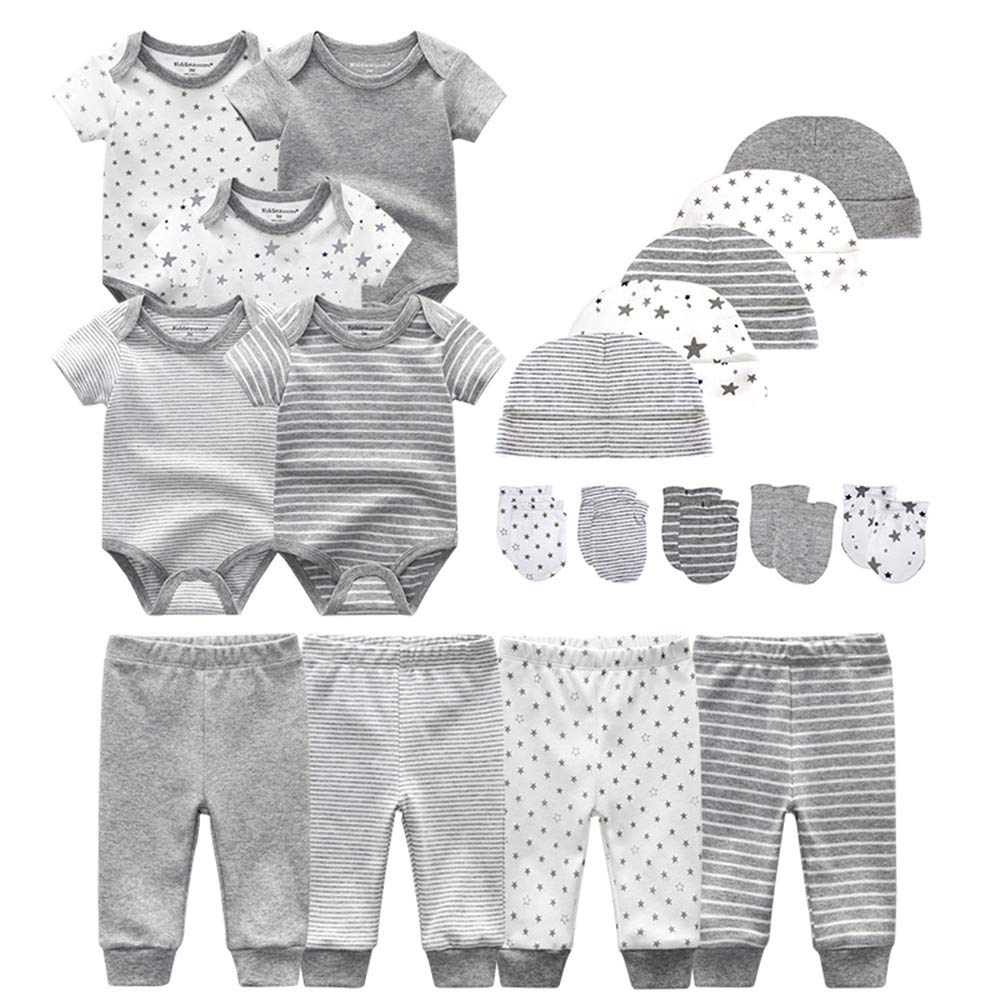 Kiddiezoom Baby-Body, Hose, Kleinkinder, Einteiler, Kleidung, Set, Outfits, für Jungen und Mädchen, Baumwollkappen, Kratzfäustlinge