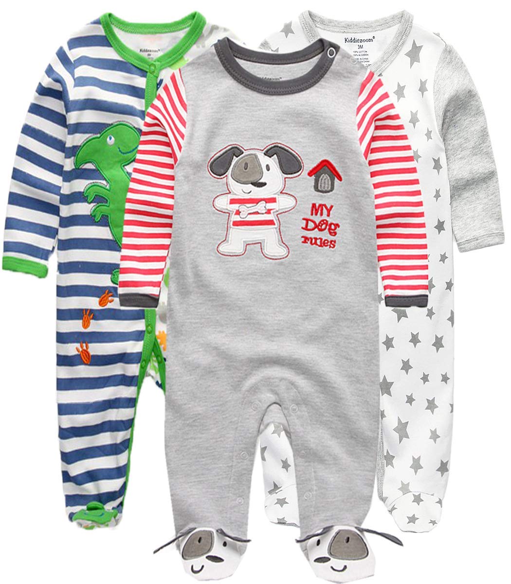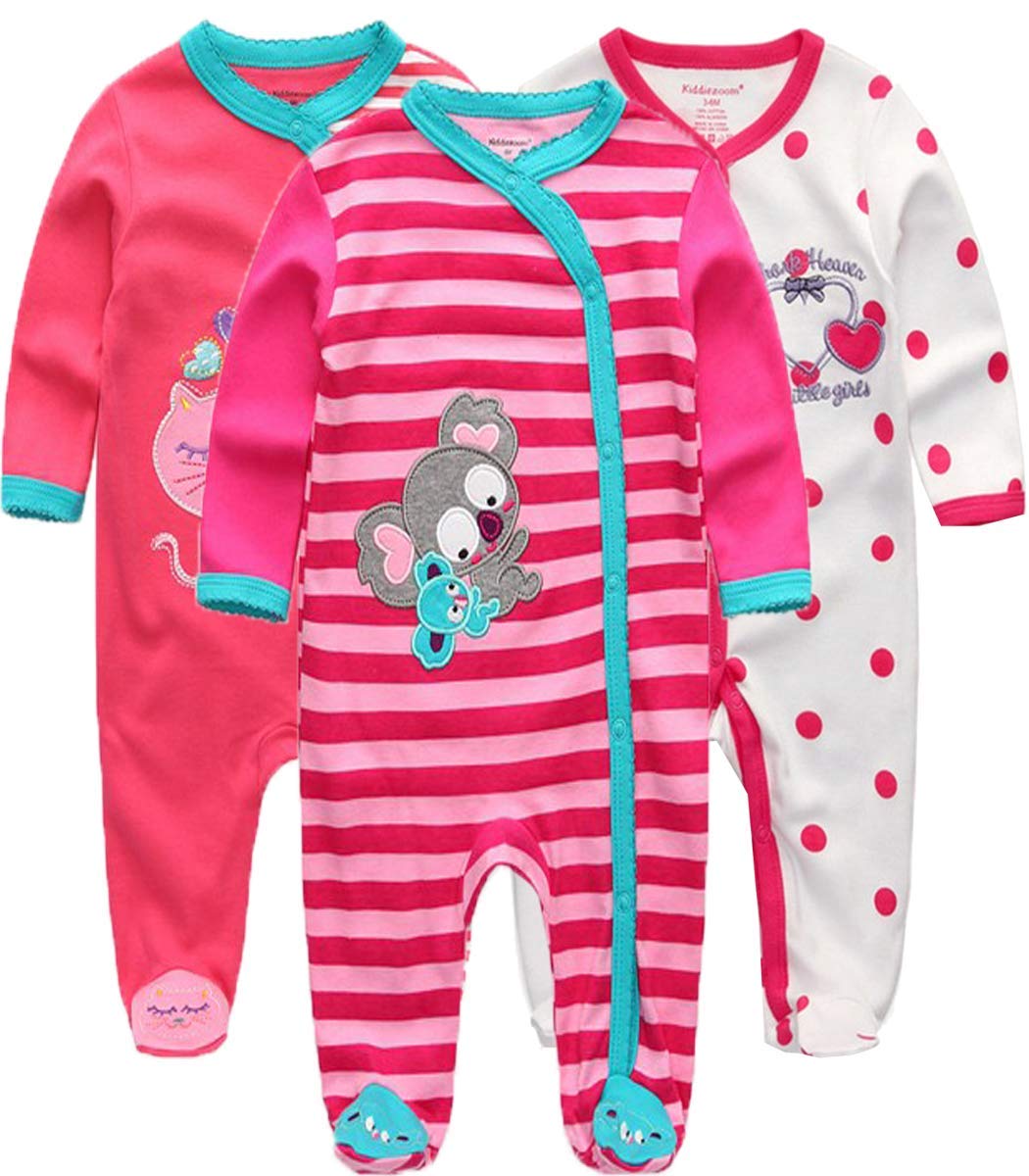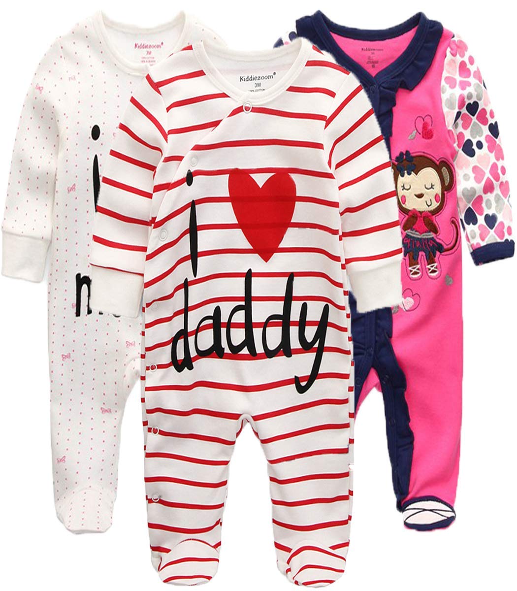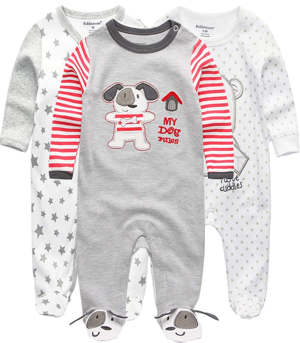 Kiddiezoom Unisex Baby-Jungen Mädchen Schlafstrampler Pyjamas Baumwolle Overalls Strampler, 3er Pack