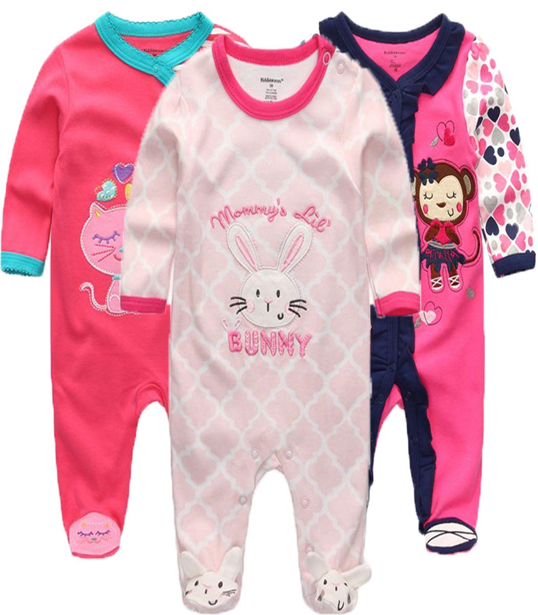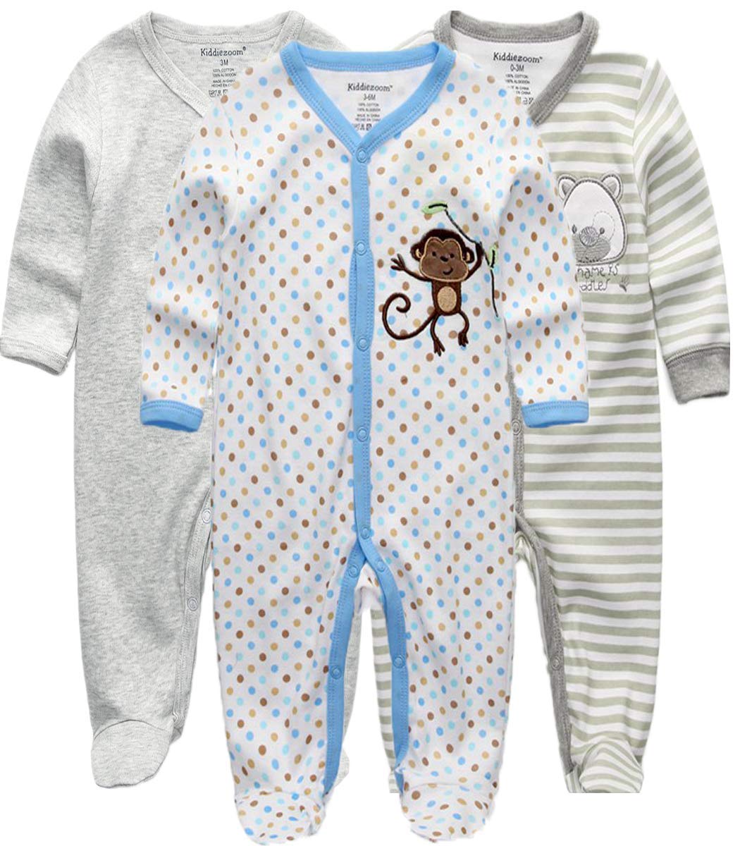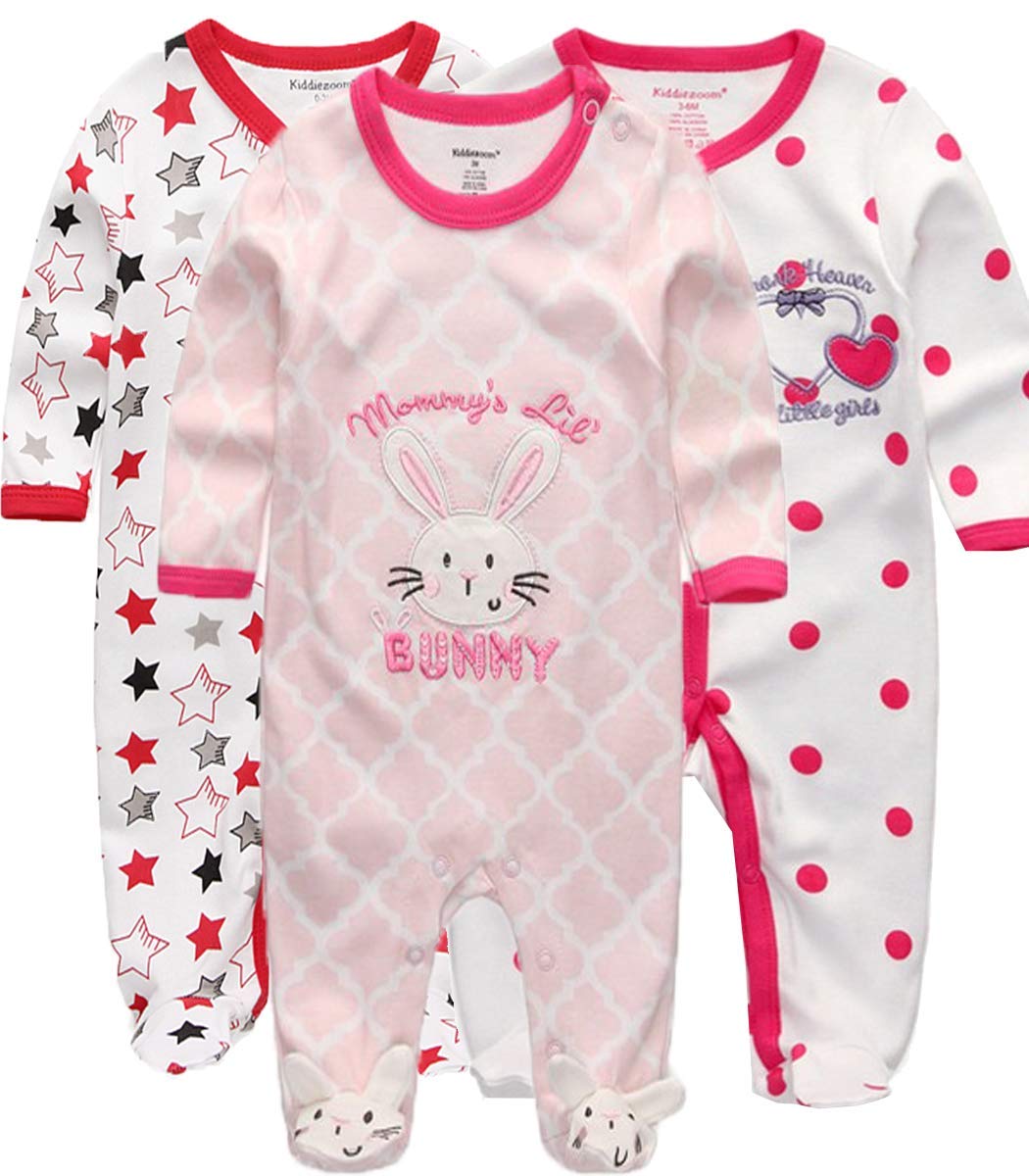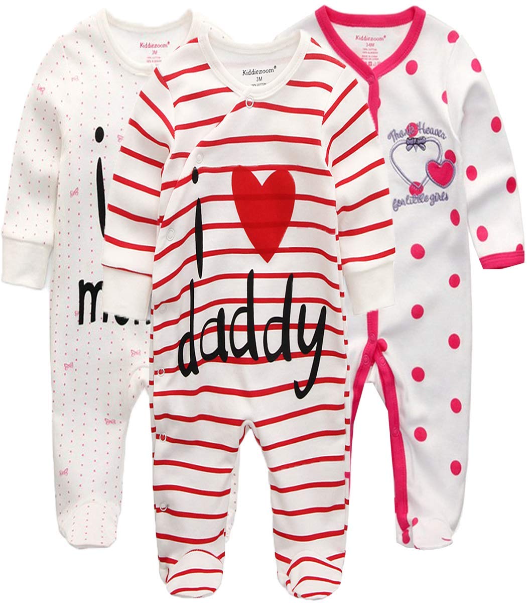 Kiddiezoom Unisex Baby-Jungen Mädchen Schlafstrampler Pyjamas Baumwolle Overalls Strampler, 3er Pack