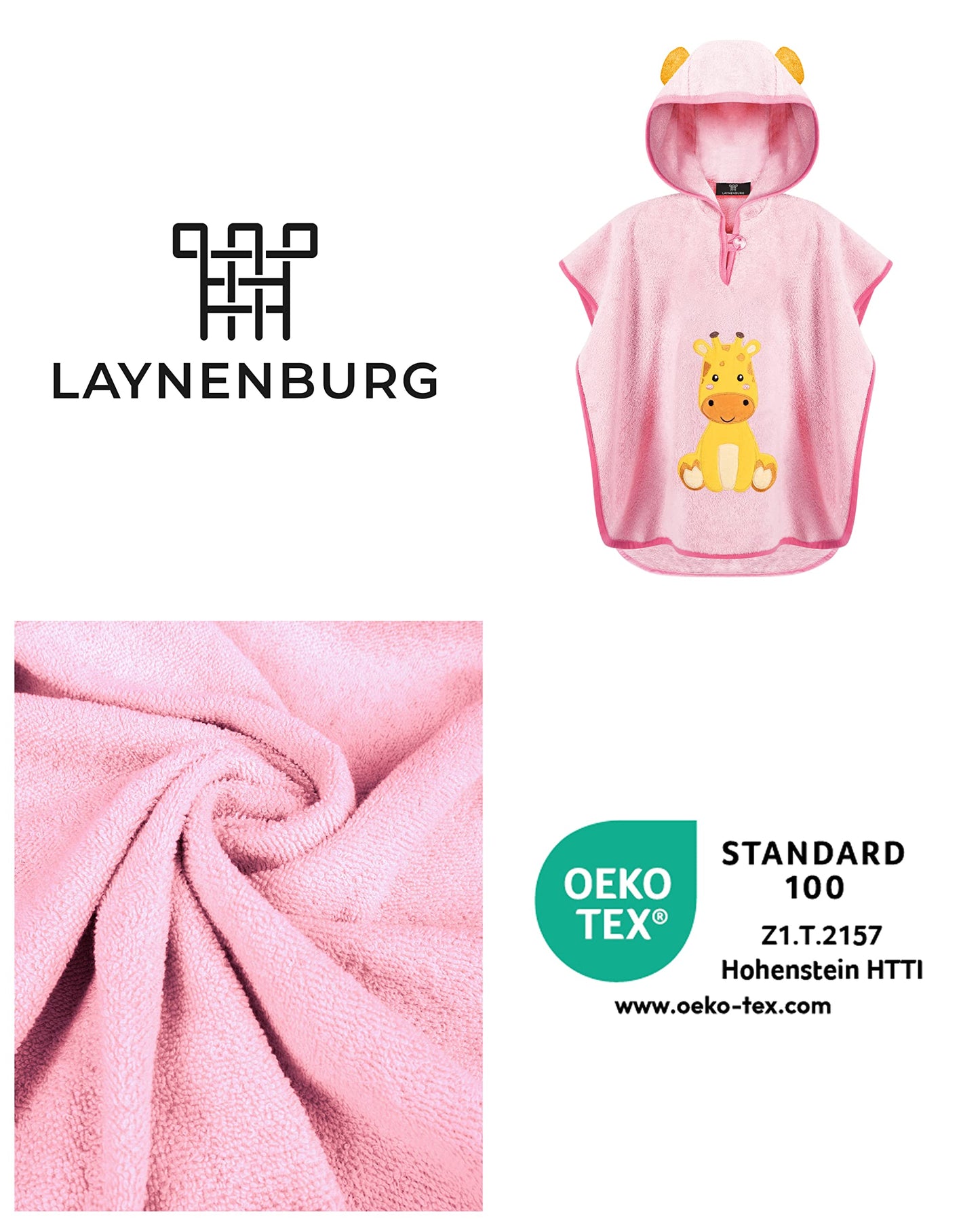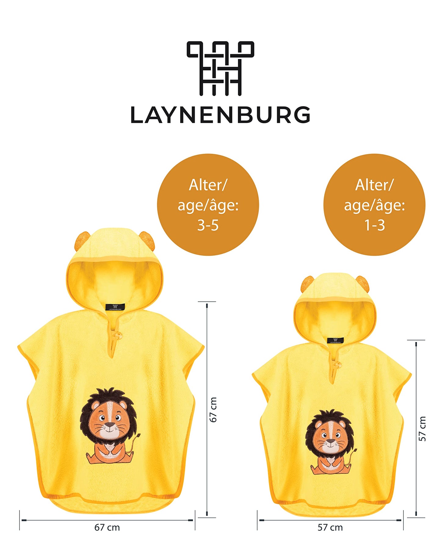 LAYNENBURG Premium Badeponcho Kinder mit Kapuze - 100% Baumwolle - OEKO TEX - Baby Jungen Mädchen Handtuch Poncho Frottee