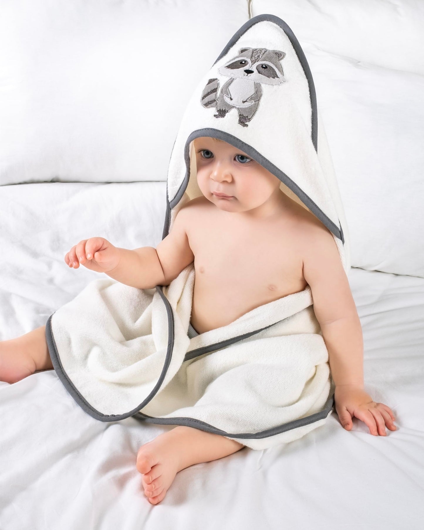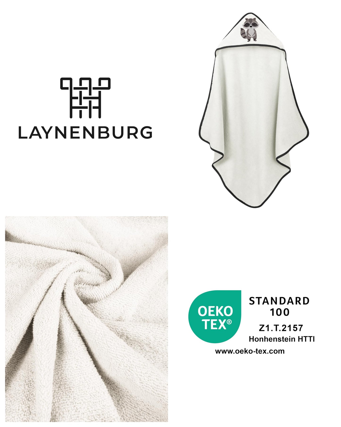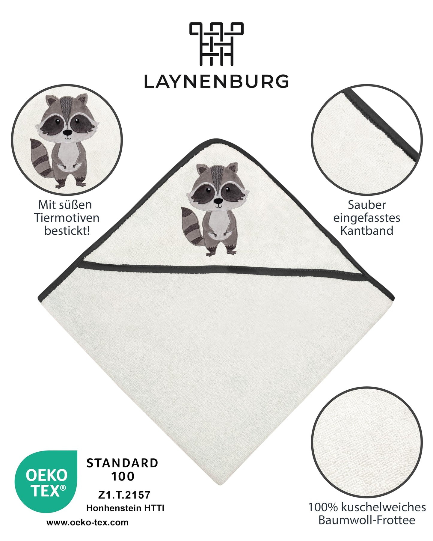 LAYNENBURG Premium Kapuzenhandtuch Baby - Badehandtuch aus 100% Baumwolle - Oeko TEX - Handtuch mit Kapuze für Neugeborene & Kinder - Badetuch, Babyhandtuch Mädchen, Jungen (Waschbär 80 x 80cm)