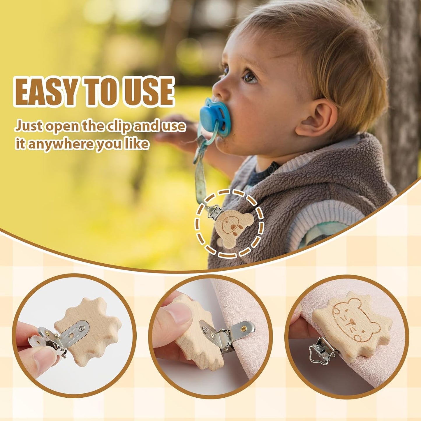 • 【Sicheres Material aus Naturholz】Unsere Schnullerclips bestehen aus hochwertigem Buchenholz und rostfreiem Metall, komplett ungiftig, geruchsfrei und speichelresistent. Die glatt polierte Oberfläche schützt die zarte Babyhaut vor Kratzern – ideal für sensible Haut.