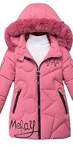The winter coat for children is the perfect choice to accompany your little princess warm and stylish through the cold season. Letter print and love pattern design perfectly match children's cute image and aesthetics.