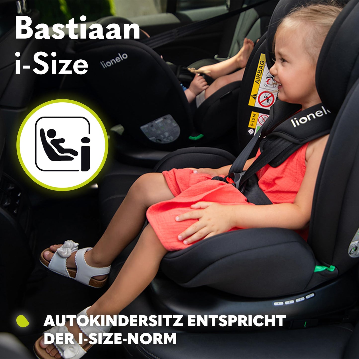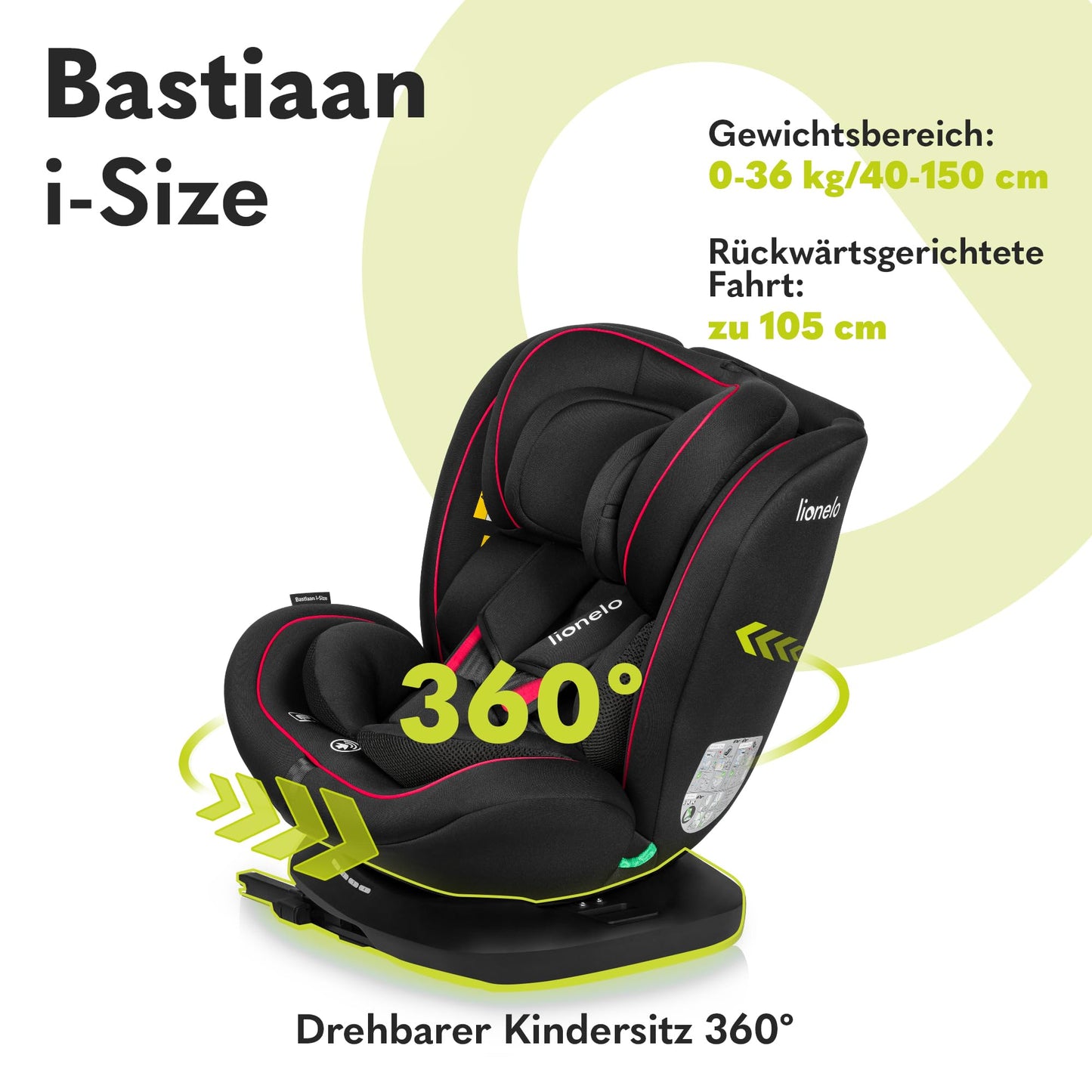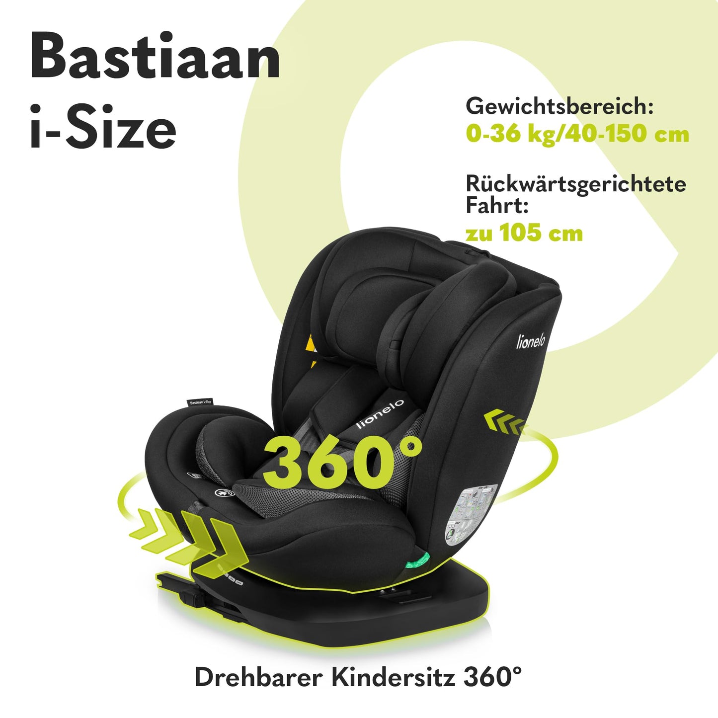 LIONELO Bastiaan i-Size Kindersitz 360° drehbar für Kinder von 40-150 cm, ISOFIX mit Pas TopTether, einstellbare Rückenlehne, Montage in Fahrtrichtung und entgegen der Fahrtrichtung
