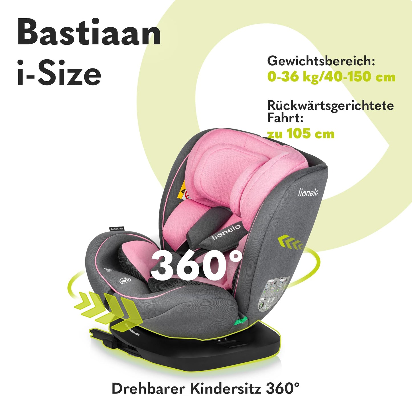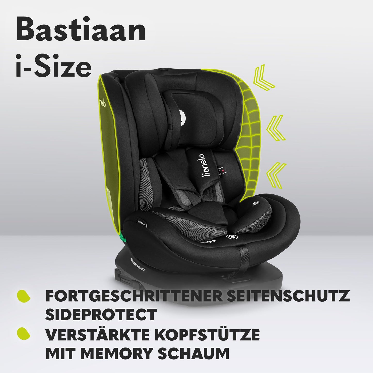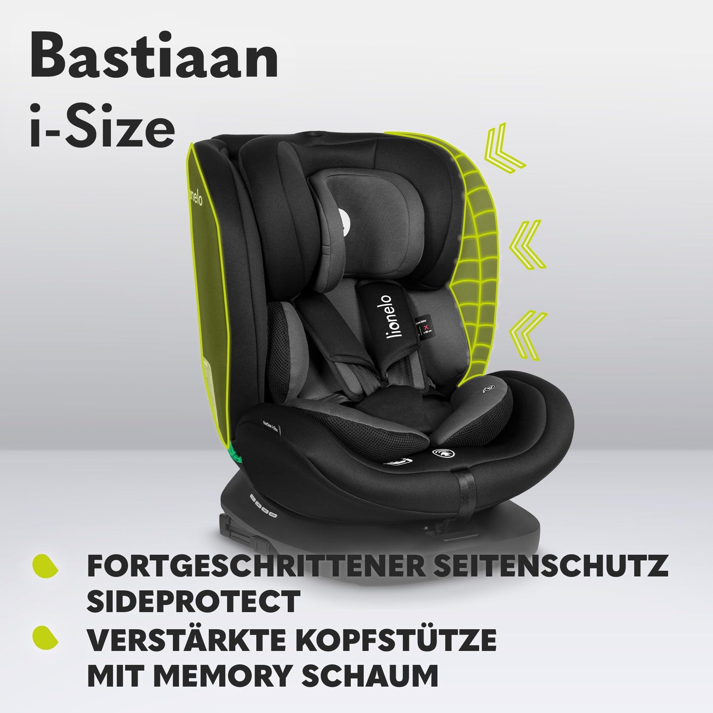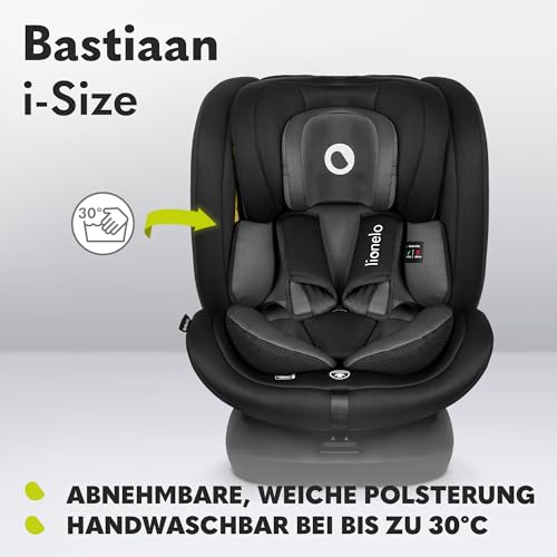 LIONELO Bastiaan i-Size Kindersitz 360° drehbar für Kinder von 40-150 cm, ISOFIX mit Pas TopTether, einstellbare Rückenlehne, Montage in Fahrtrichtung und entgegen der Fahrtrichtung