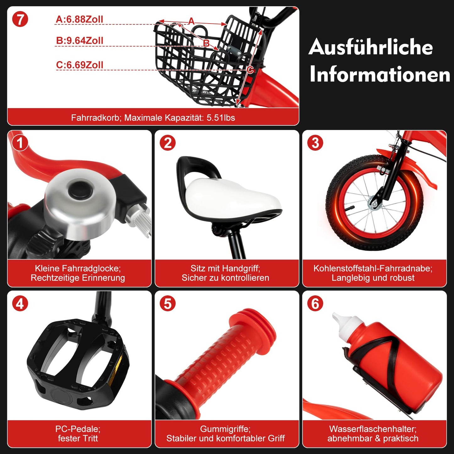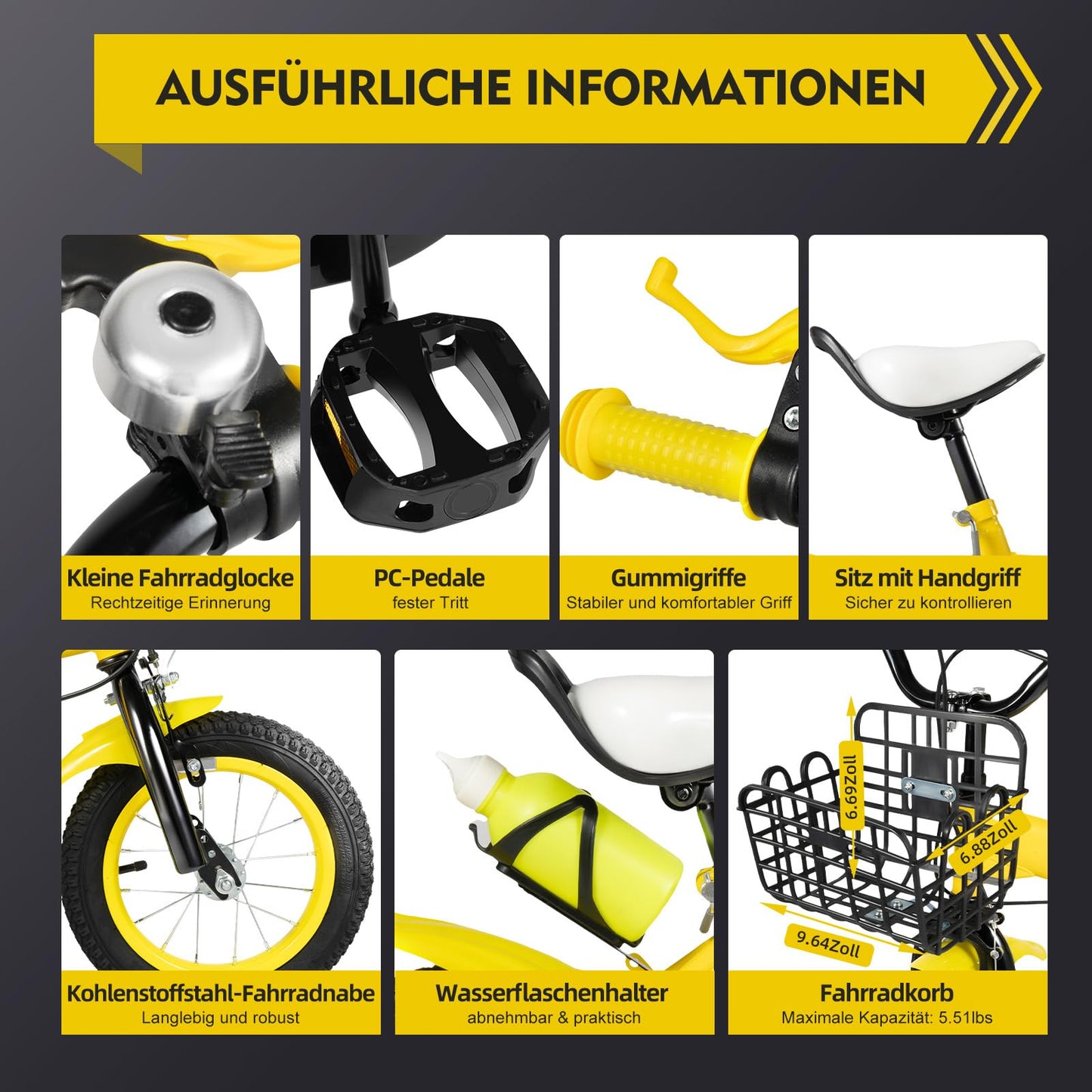 • Stützräder: Sicher und stabil – ideal für Anfänger, die das Fahren lernen.