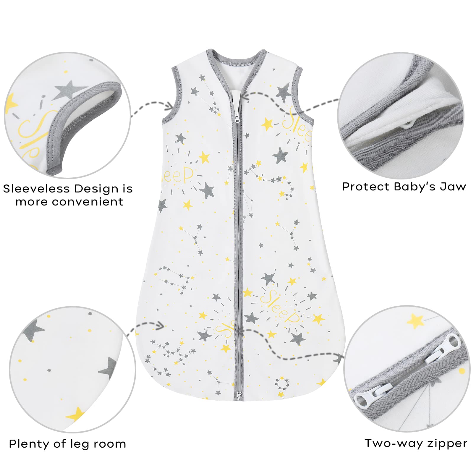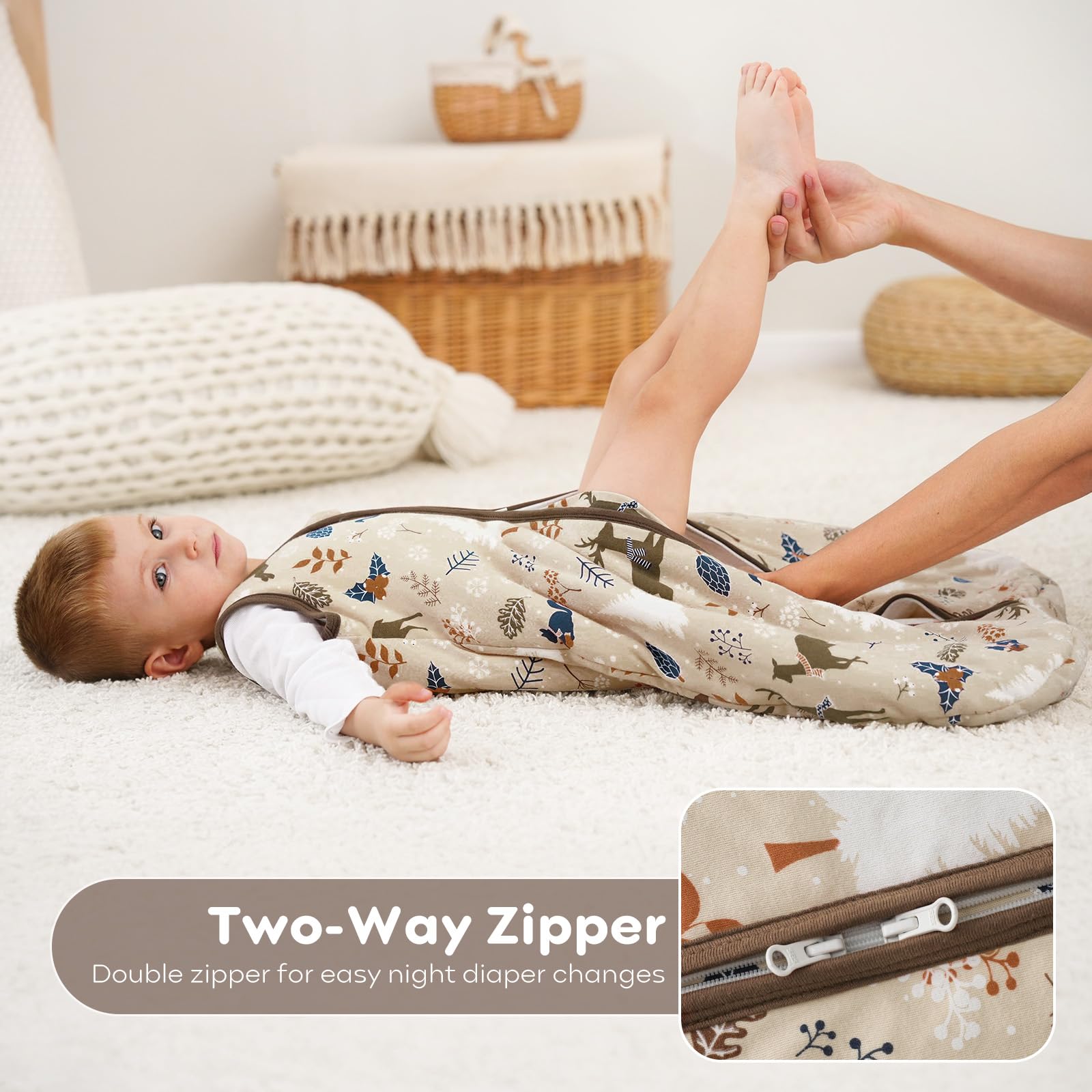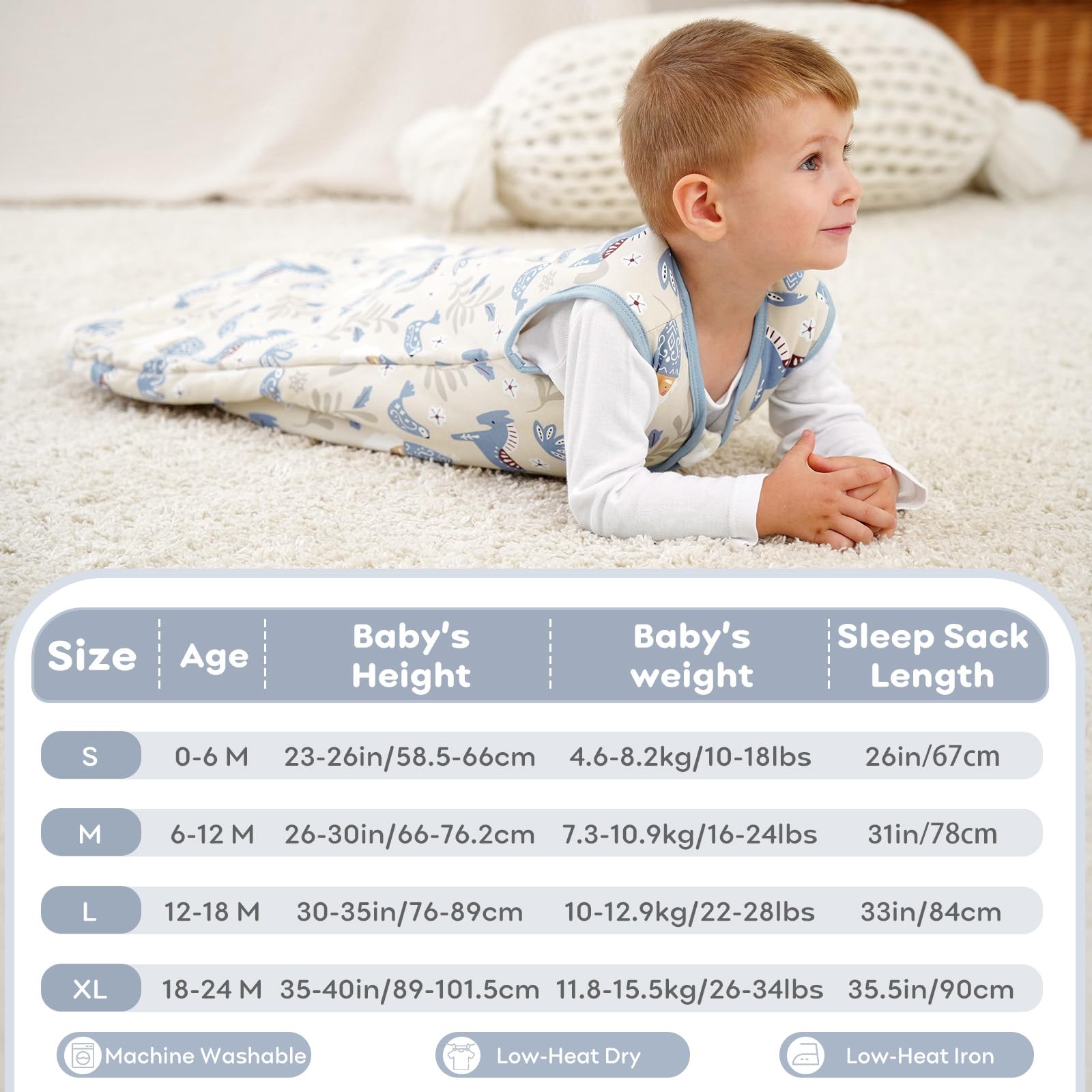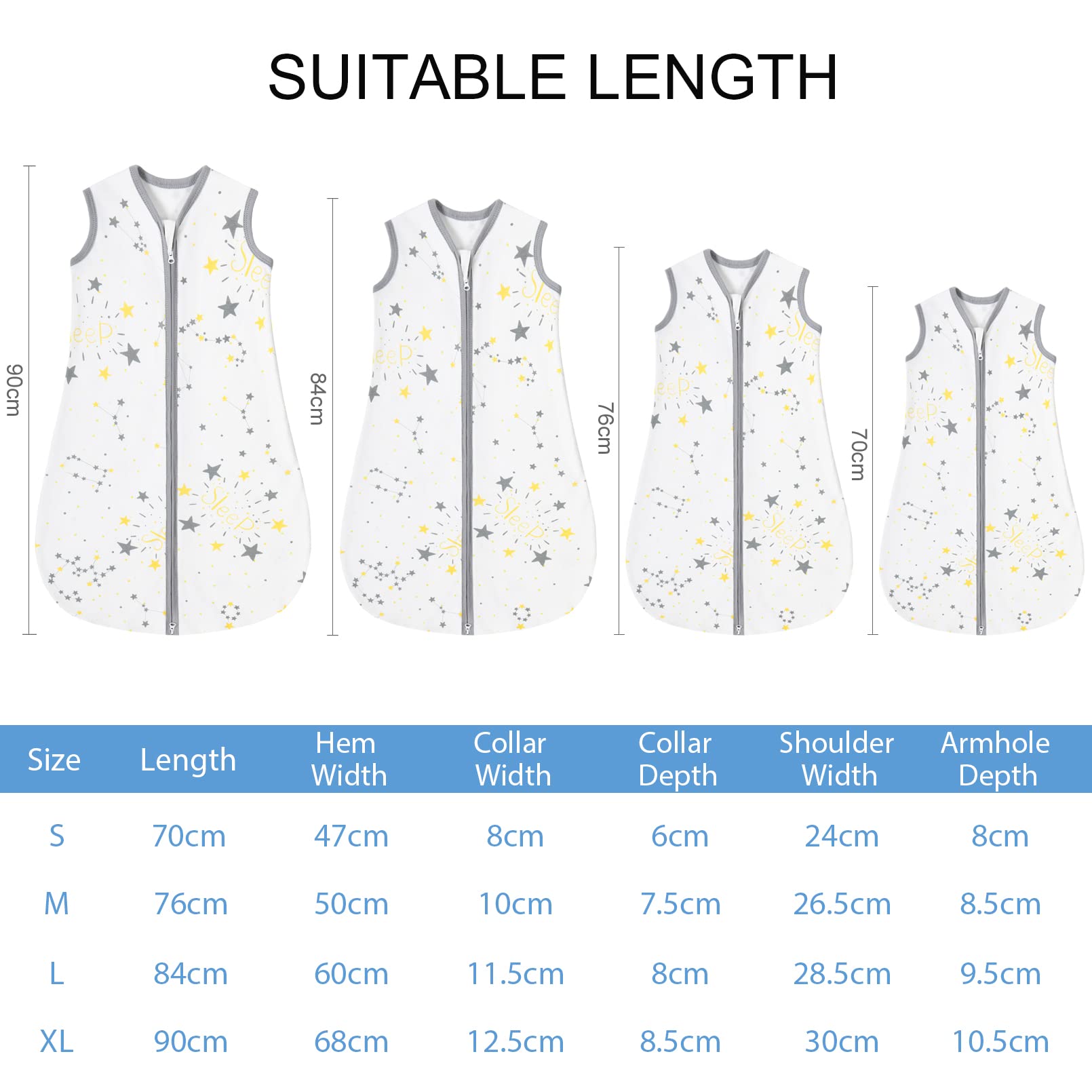 • 【High-quality materials】Surface: 100% cotton, inner layer: 100% cotton, back: 100% cotton, sandwich filling: polyester. Our baby sleeping bags are soft, comfortable and extra warm for baby's delicate skin. The sleeping bags provide a warm and safe sleeping environment where babies can enjoy a comfortable sleep.
