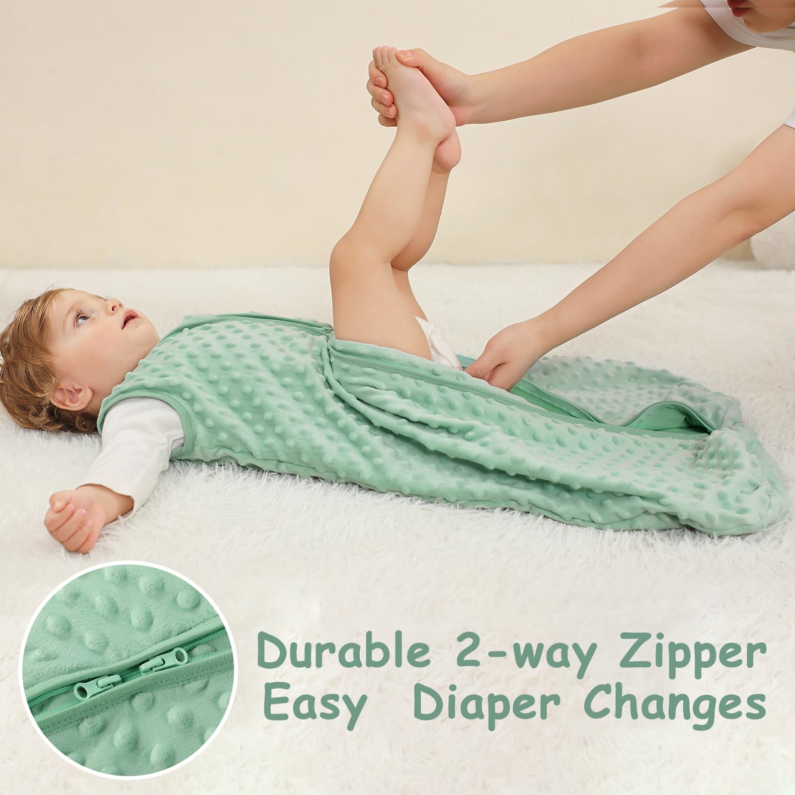 • Closure design: the baby winter sleeping bag helps your baby sleep in a secure supine position without rolling back and forth. Our sleeping bag has a double opening zip and a chin guard at the top of the zip. The zip makes it easy to change your child's nappy.