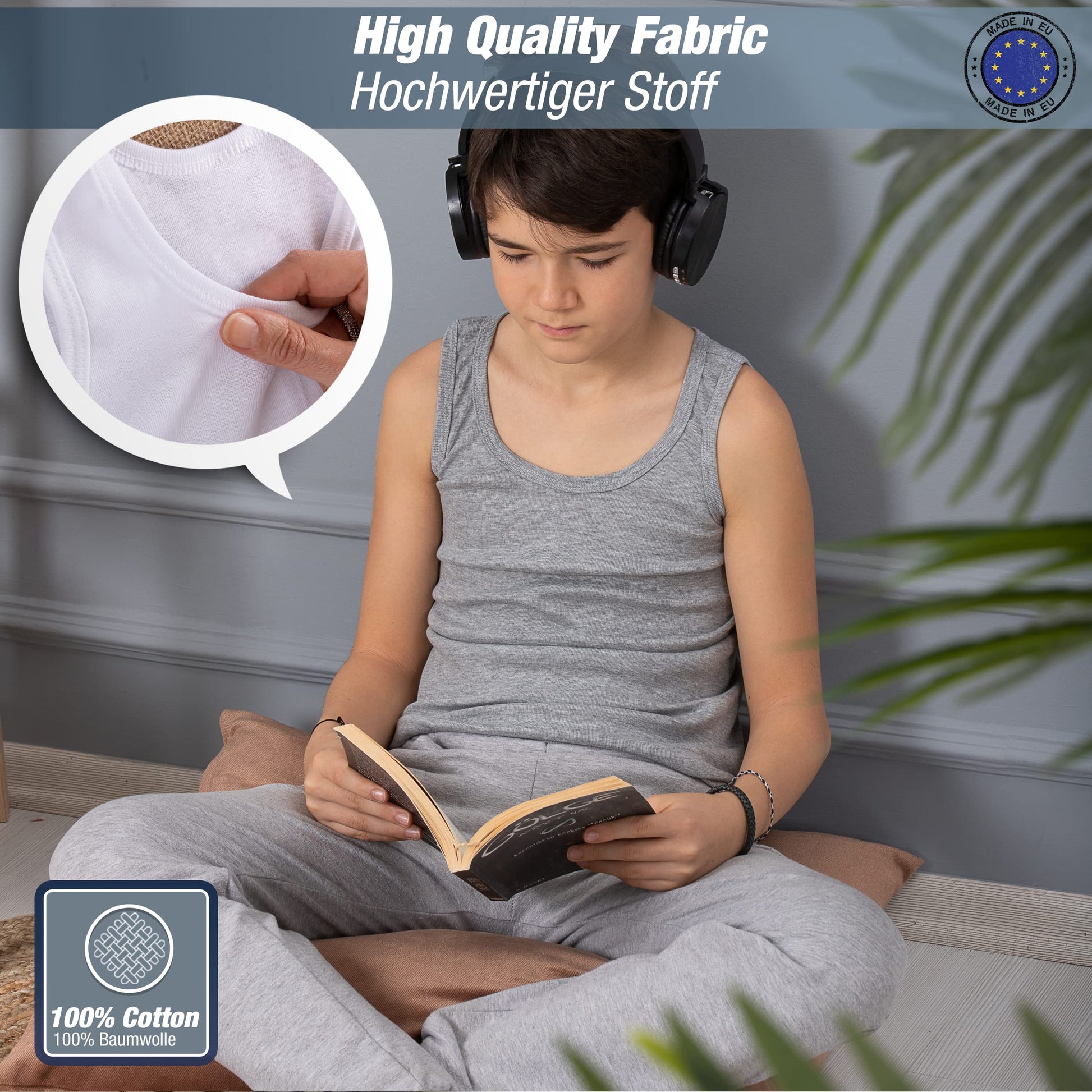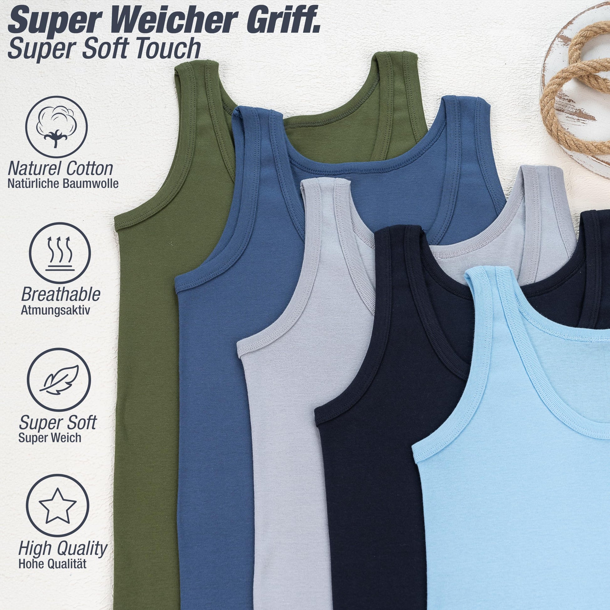 5er Pack Knaben Unterhemden aus 100% Baumwolle