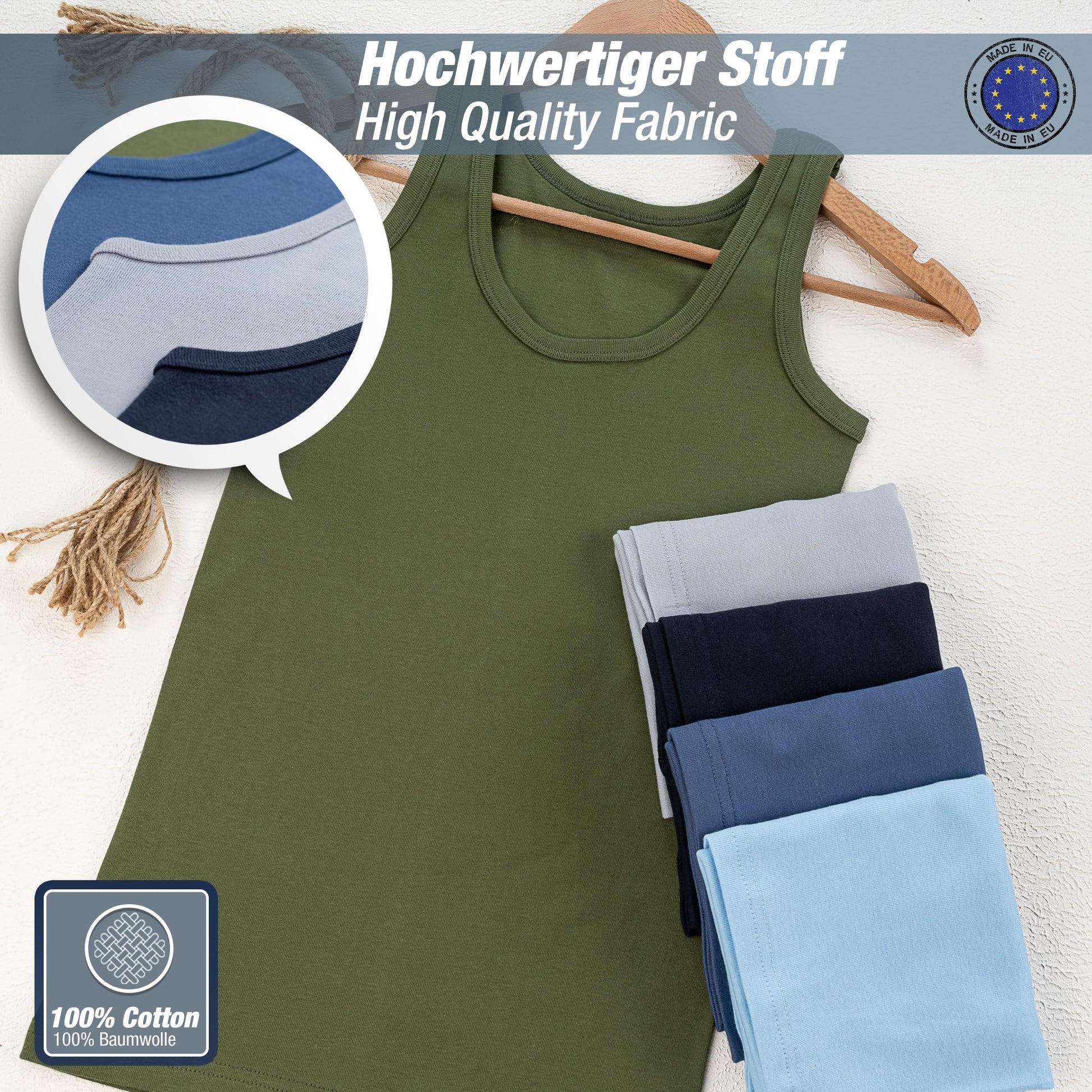 LOREZA ® 5 Pack Jungen Unterhemden Feinripp 100% Baumwolle ohne Seitennaht Tank Top