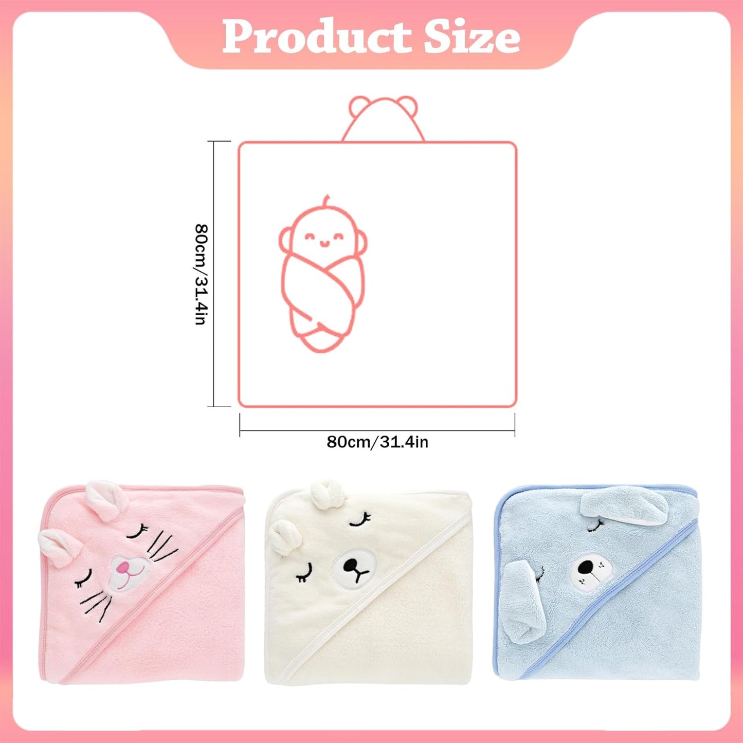 Mailfull 3 Stück Babyhandtuch Mit Kapuze 80 x 80 cm Baby Badetuch Kapuzenhandtuch Baby Niedliches Kapuzenhandtücher Mit Muster Für Babys Neugeborene Unisex 0-6 Jahre