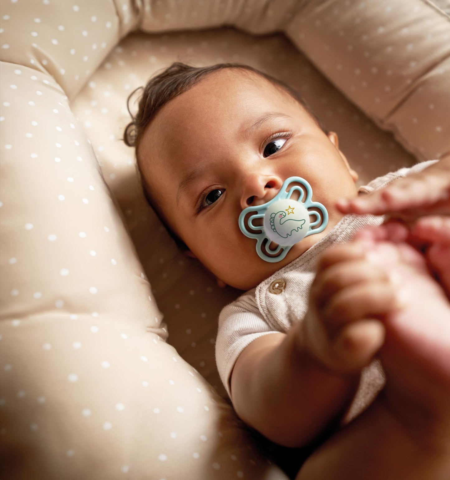 • Sanft zur Haut – Dank der Luftlöcher und dem abgerundeten Schild ist der MAM Schnuller besonders sanft zu empfindlicher Babyhaut.