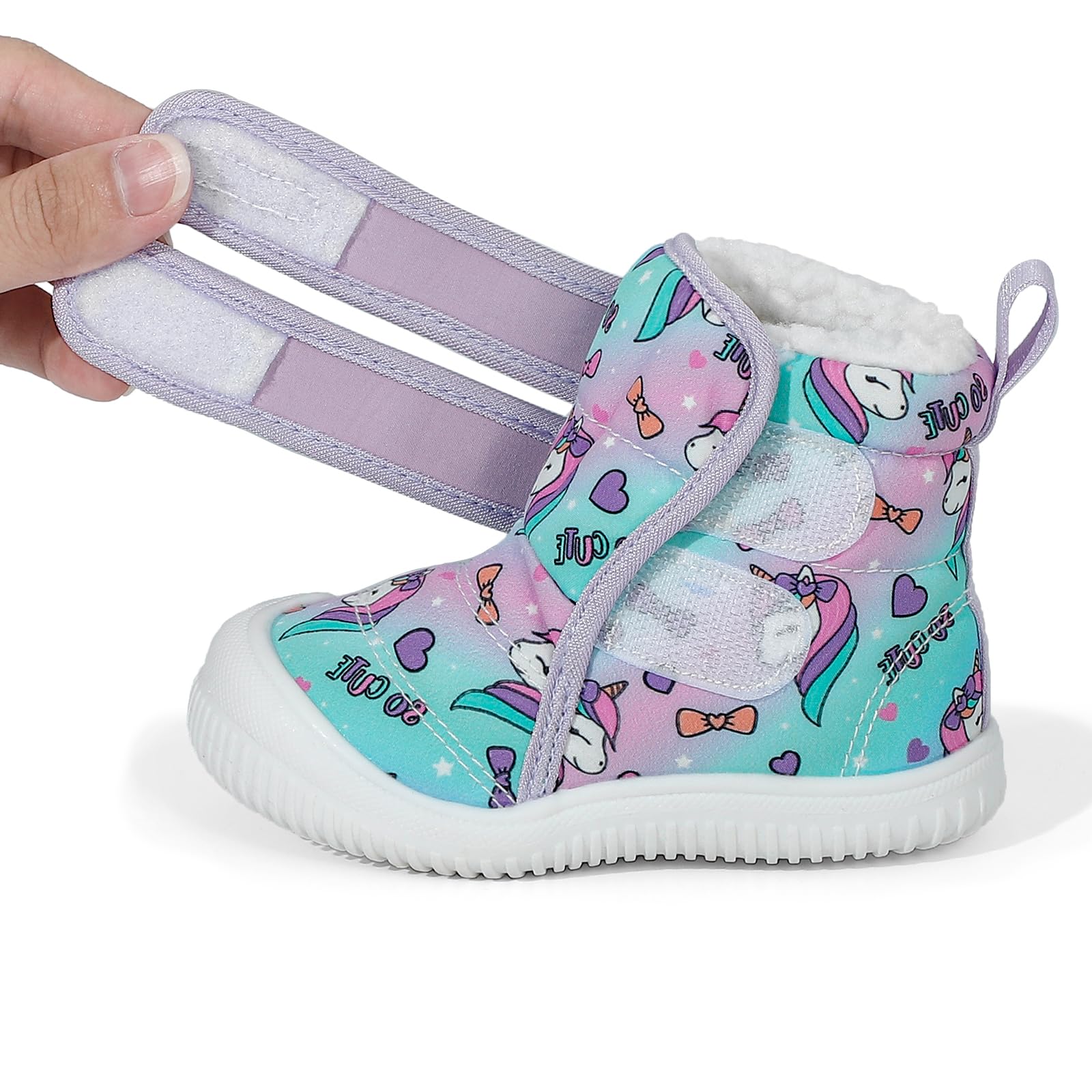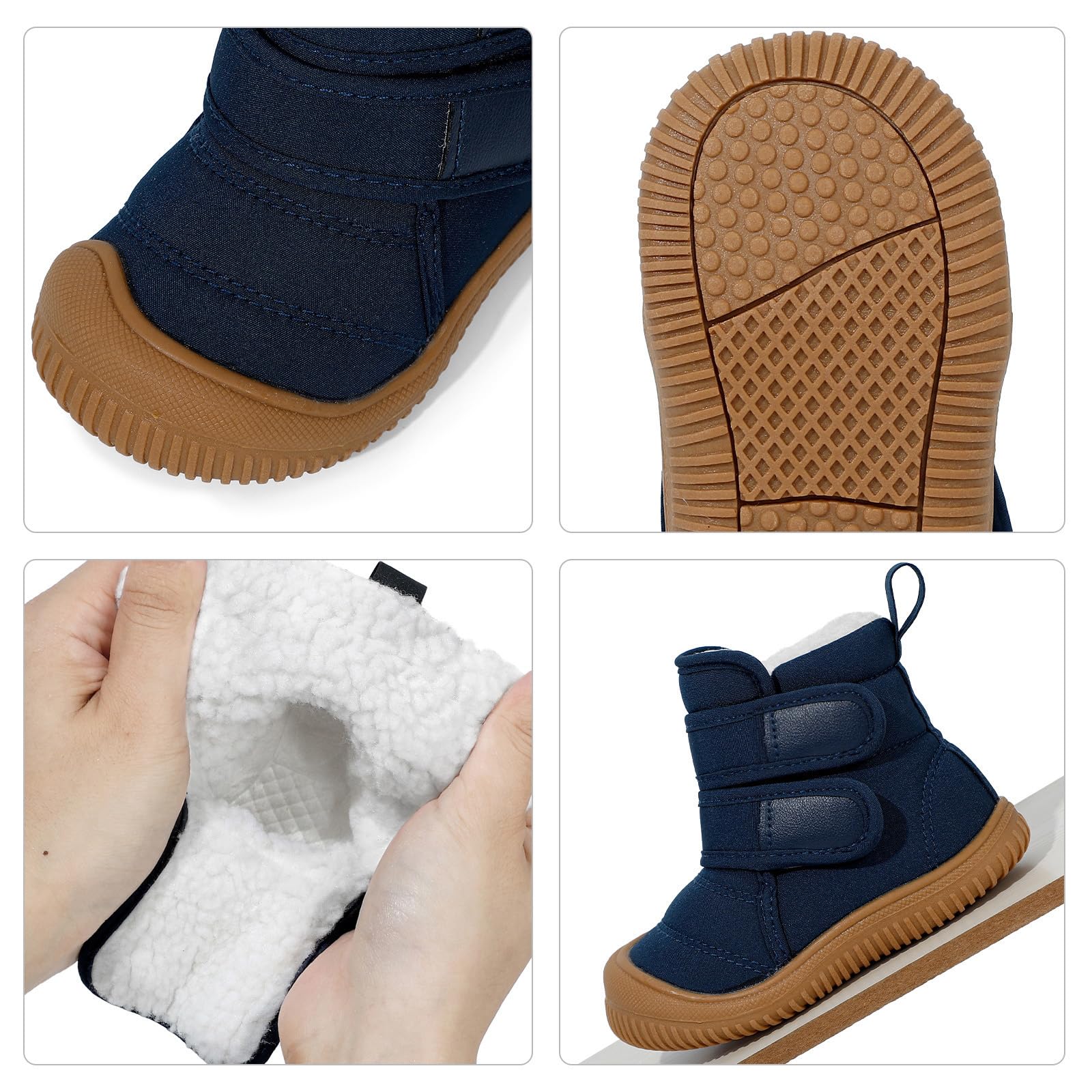 • The toddler winter boots feature a TPR rubber sole for maximum comfort and grip. The lightweight, thick sole effectively prevents small feet from suffering discomfort on a cold floor.
