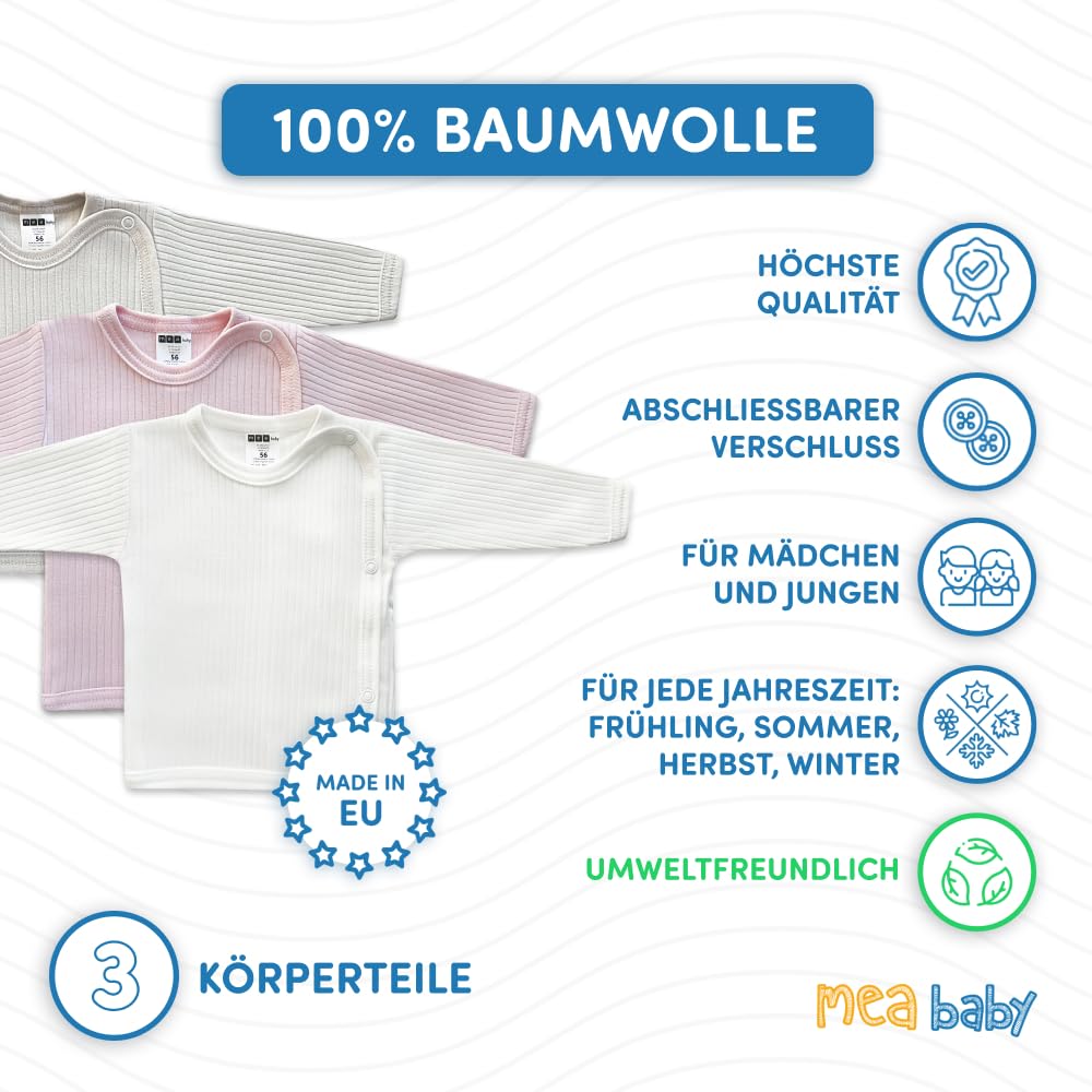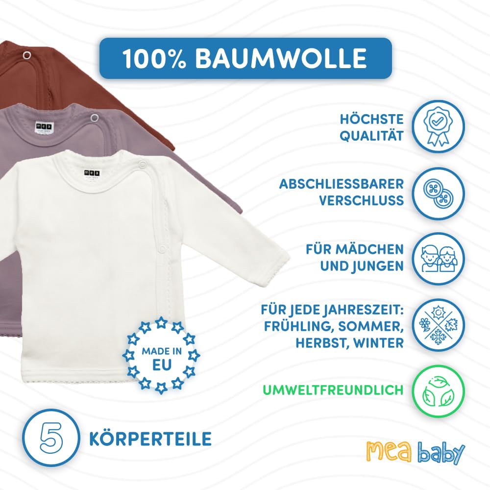 MEA BABY Unisex Baby Wrap Shirt Wrap Jacket Long Sleeve 100% Cotton Pack of 5 Wrap Shirt for Girls Wrap Shirt for Boys