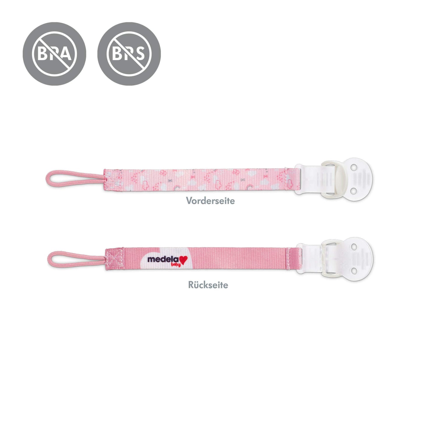 • Lieferumfang: 1 x Medela Baby Schnullerkette in süßem Design / Sicheres Material und unkomplizierte Handhabung mit Clip / Einfaches Anbringen der Kette am Schnuller / BPA- und BPS-frei