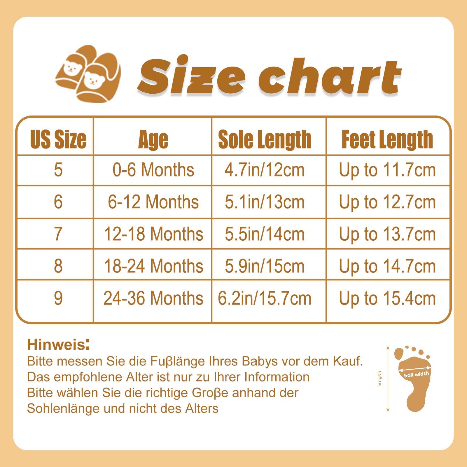 - Please make sure to choose the right size for your baby according to our size chart. And please clean the shoes with a damp cloth, not with a machine.