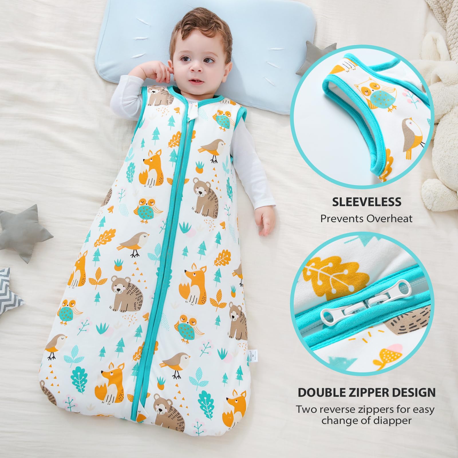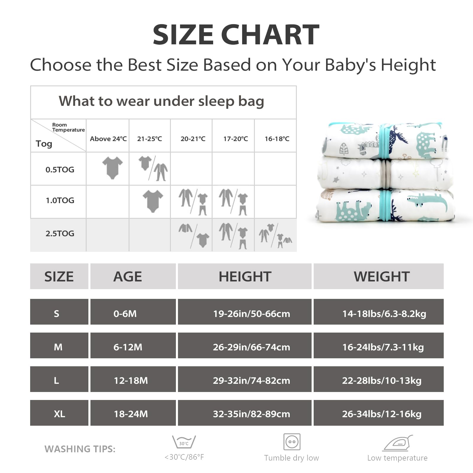 • Comfortable sleep: Our baby sleeping bag has 2.5 tog, is super soft, comfortable, offers a wonderful sleeping condition for room temperatures below 20°C, has a sleeveless design.