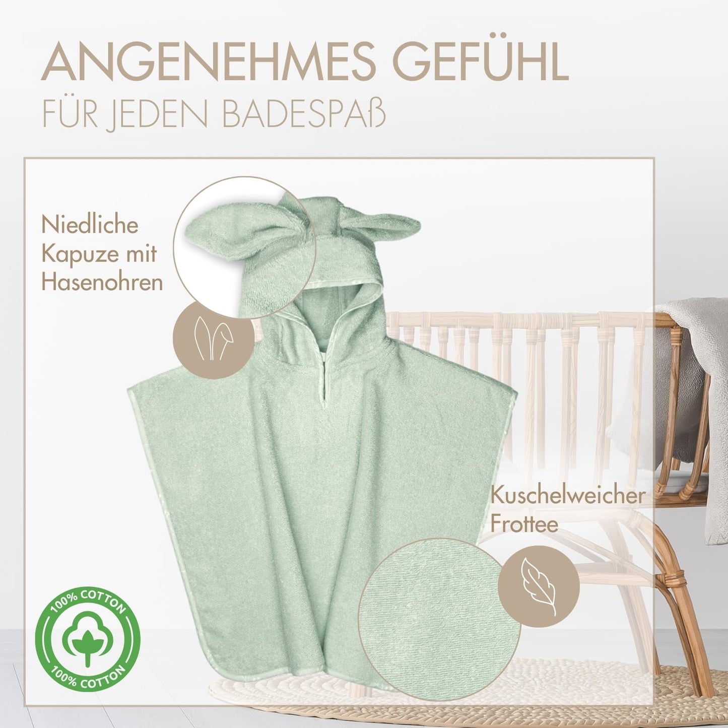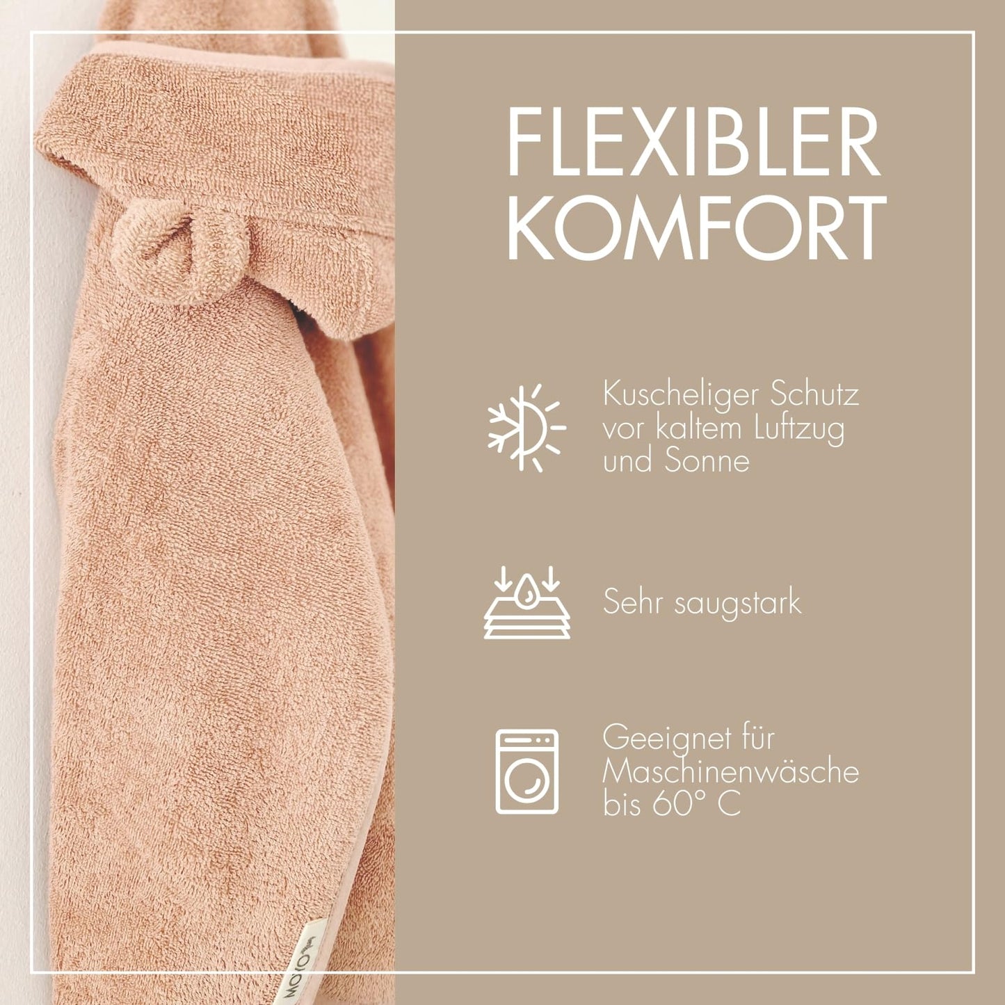 • SCHLICHTES DESIGN - Unser MOYO Kinder Poncho in zarten Farben, mit niedlicher Kapuze & Hasenohren begeistert sowohl Jungen als auch Mädchen von 0-3 Jahren - Dank mitgelieferter Geschenkverpackung ideal als Geschenk!