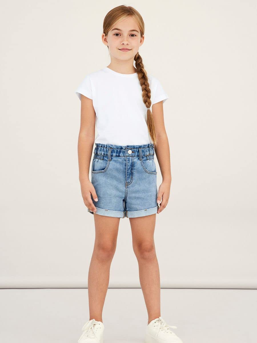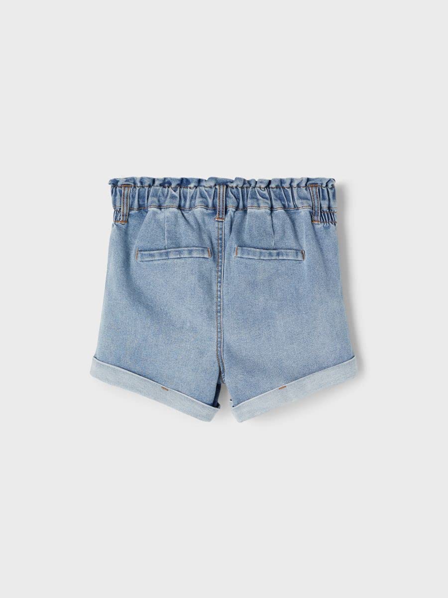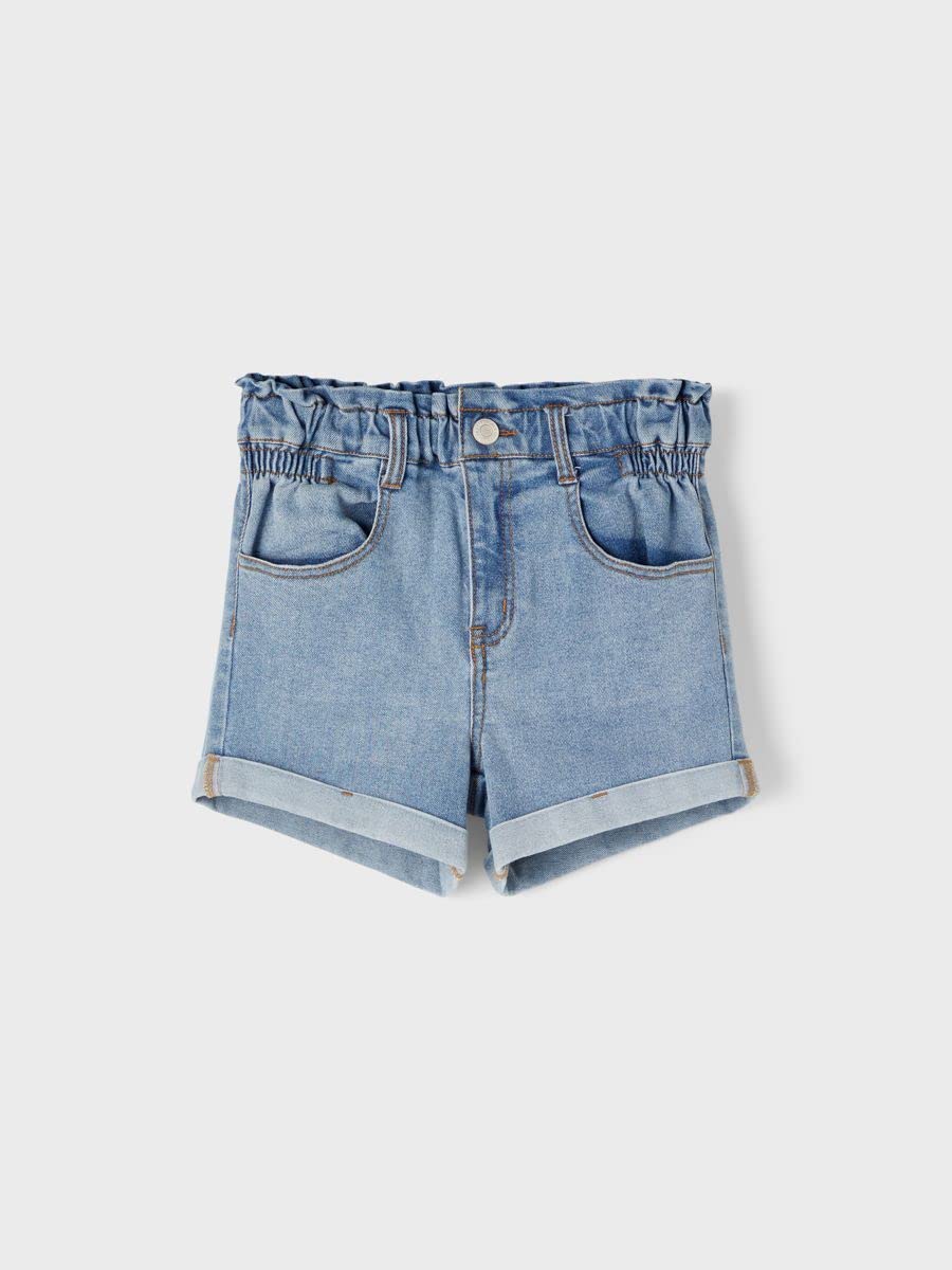 • Detail type: shorts - fabric: denim is a durable woven fabric available in several expressions for a unique look - leg details: fold-up hems - waist/rise: high waist - closing/fly: hook button and zip fly fastening - extra details : - elasticated and adjustable waist - - paper bag waistband - pocket other : front and back pockets - occasion/styling: create a stylish outfit for your child with light and airy summer styles for perfect sunny days and light nights - Fit: Baggy fit