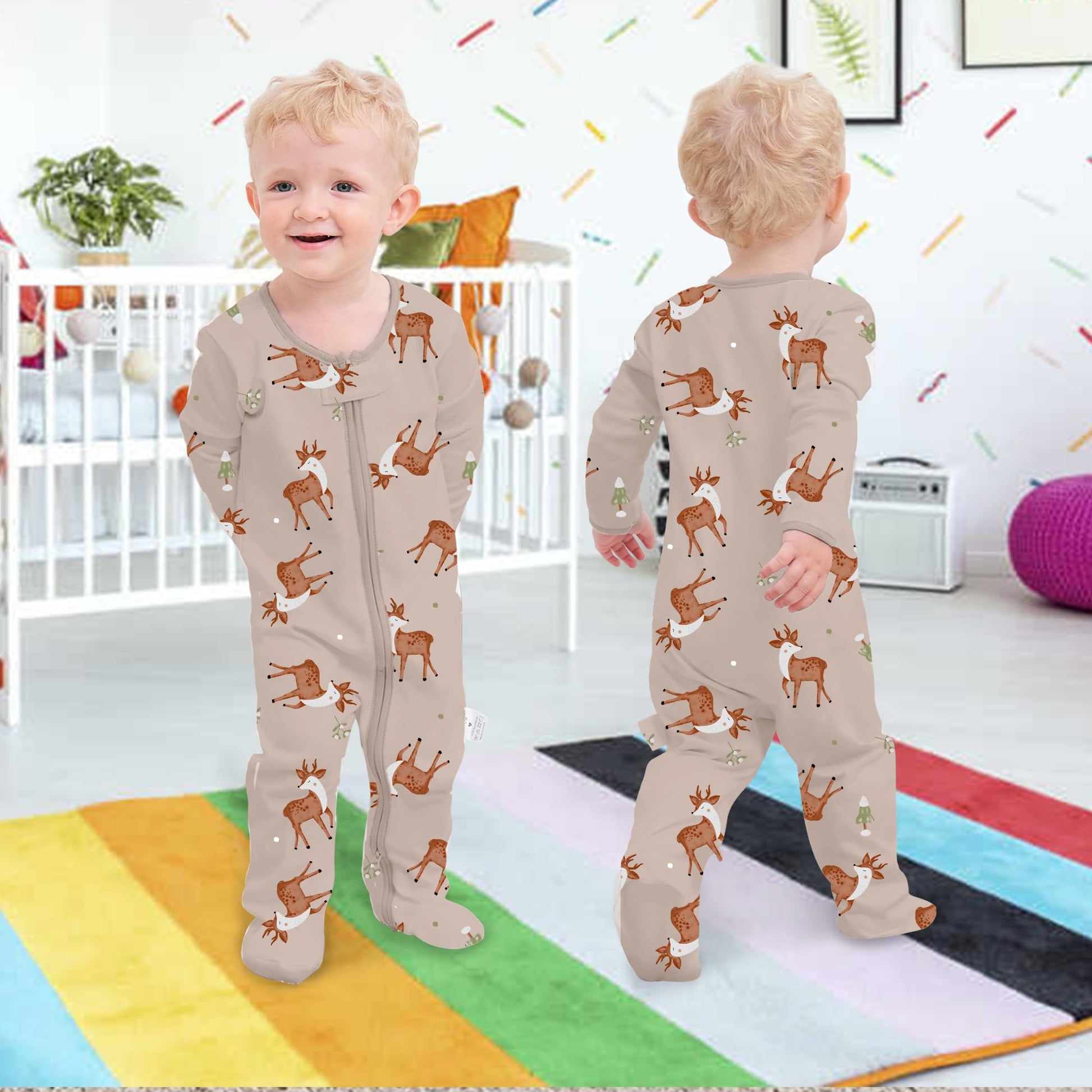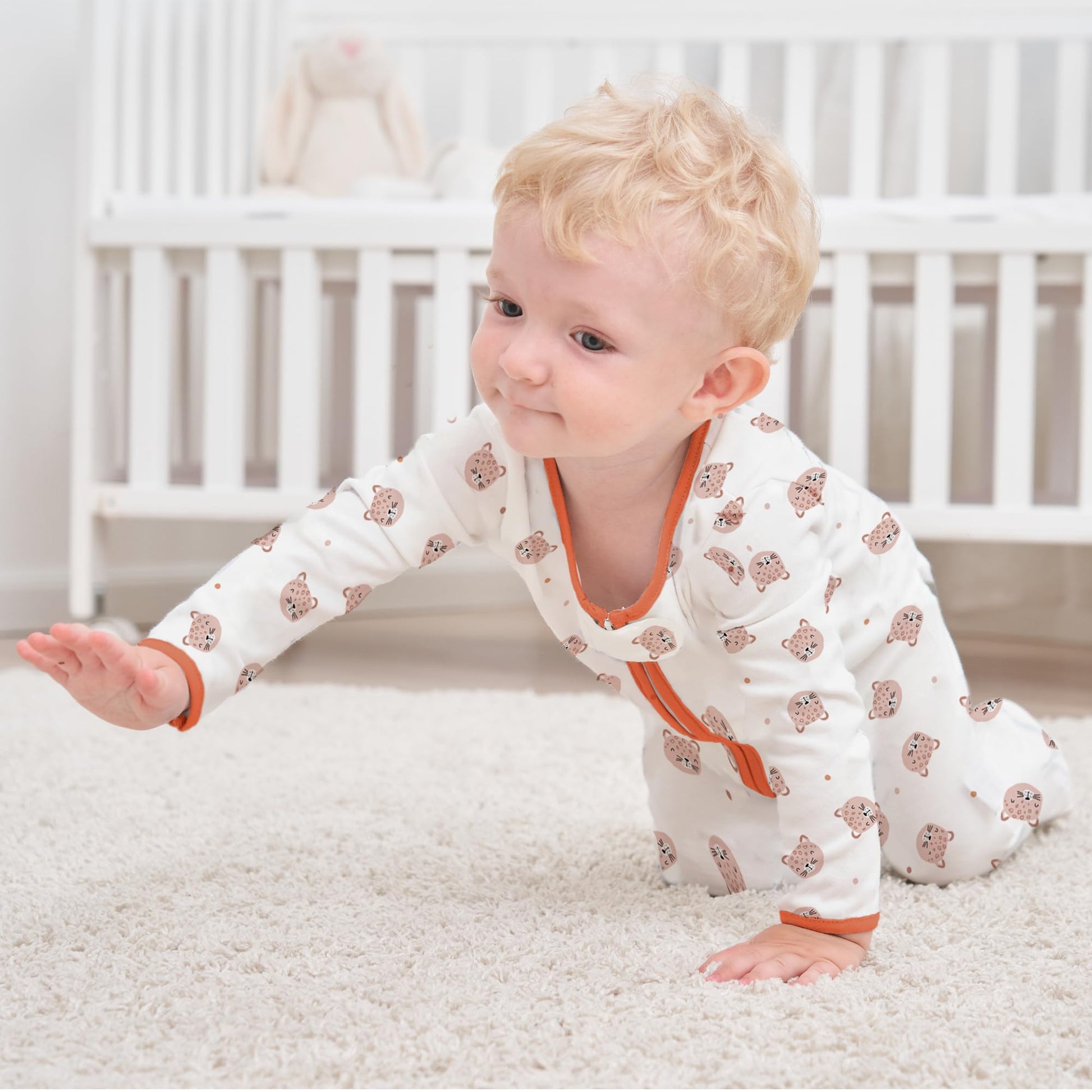 • FRONT-REISSVERSCHLUSS-DESIGN: Modischer Strampler-Body mit Tiermotiv, Reißverschluss-Design vorne für einfaches Anziehen oder Windelwechseln, ultraweiche und atmungsaktive Nachtwäsche für Kleinkinder.