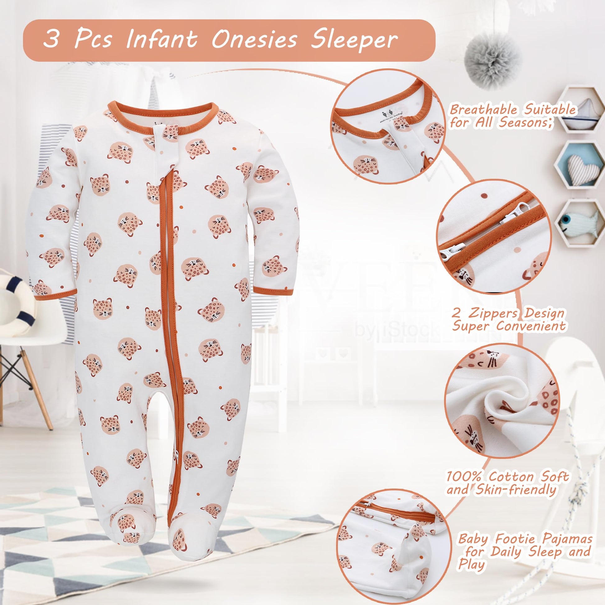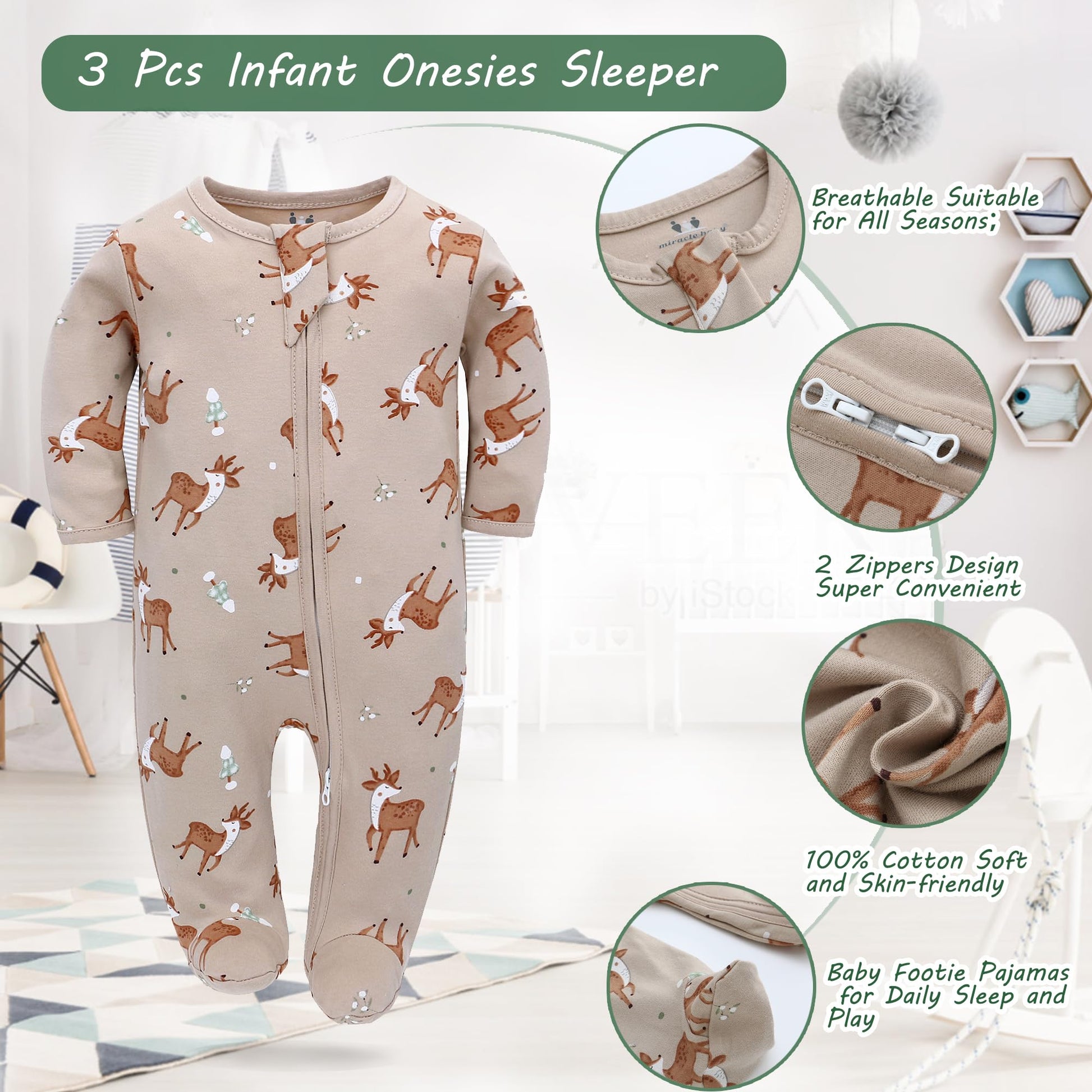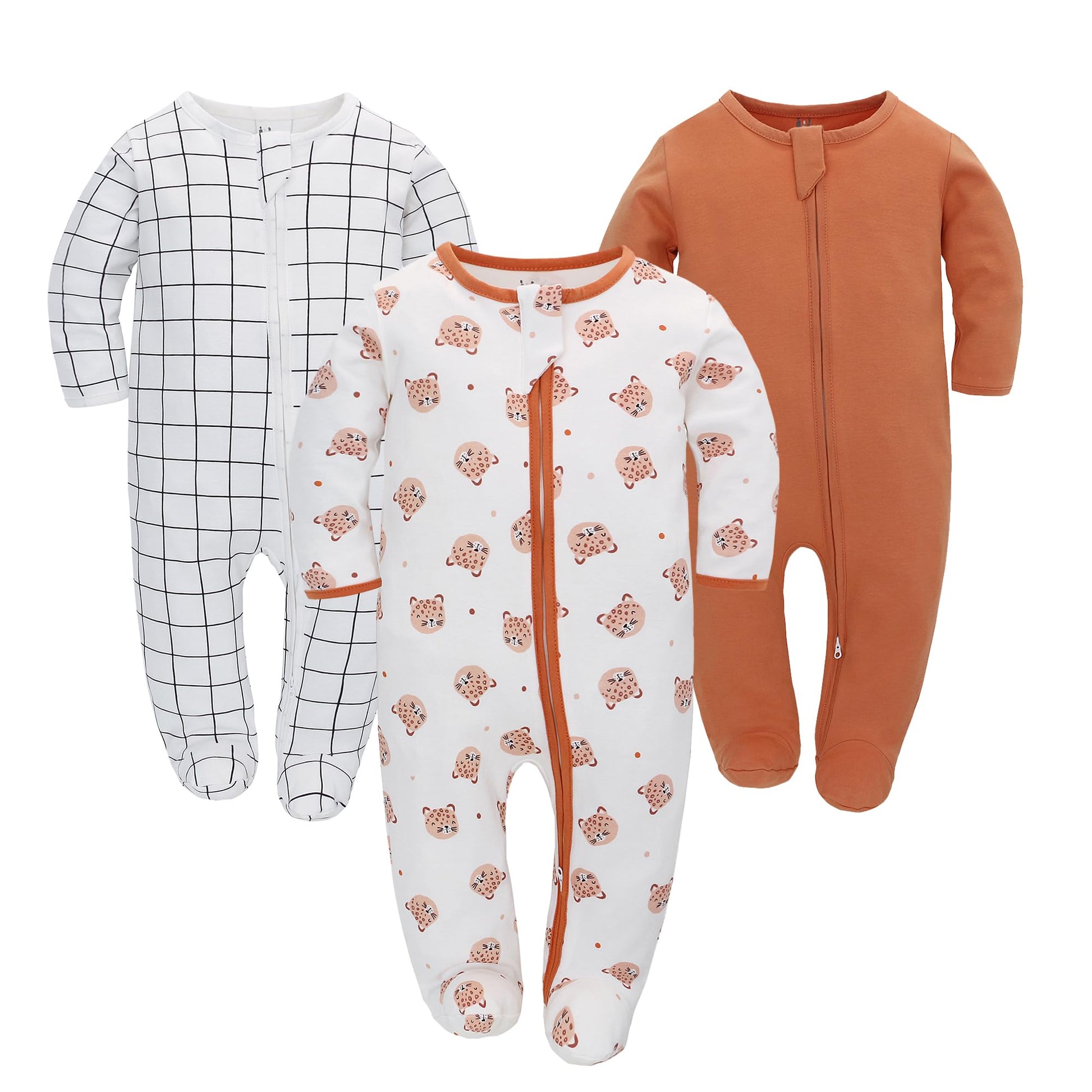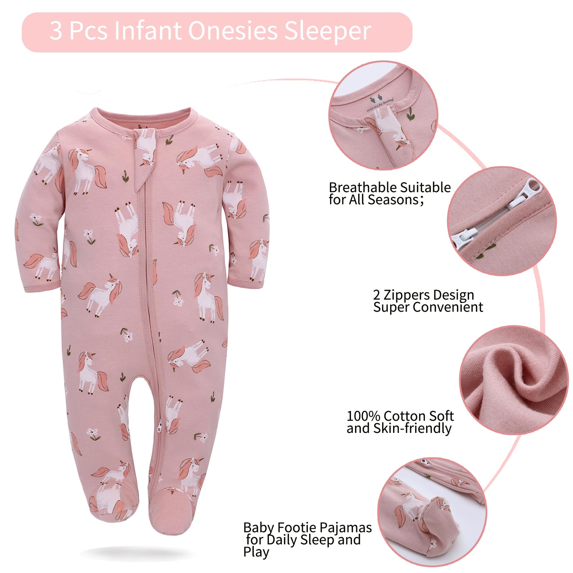 Neugeborenes Baby Jungen Mädchen Strampler mit Fuß Baby Schlafanzug Einteilige Lange Ärmel Overall Säuglings Frühling Herbst Body, 3er-Pack