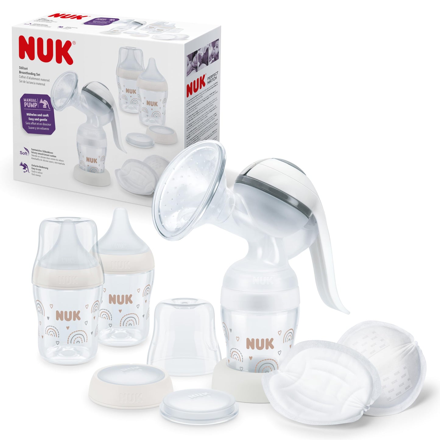 • DAS NUK COMPLETE FEEDING SET: Mit allem, was man braucht, um sein Baby zu Hause oder unterwegs zu füttern; Perfect Match Flaschen haben einen besonders weichen und flexiblen Sauger, der sich im Mund des Babys formt und sich sanft an die Lippen und den Gaumen schmiegt. Die hautweiche Oberfläche und die große Lippenauflage geben ein bekanntes, beruhigendes Gefühl; 98 % der Babys akzeptieren diese Flasche*