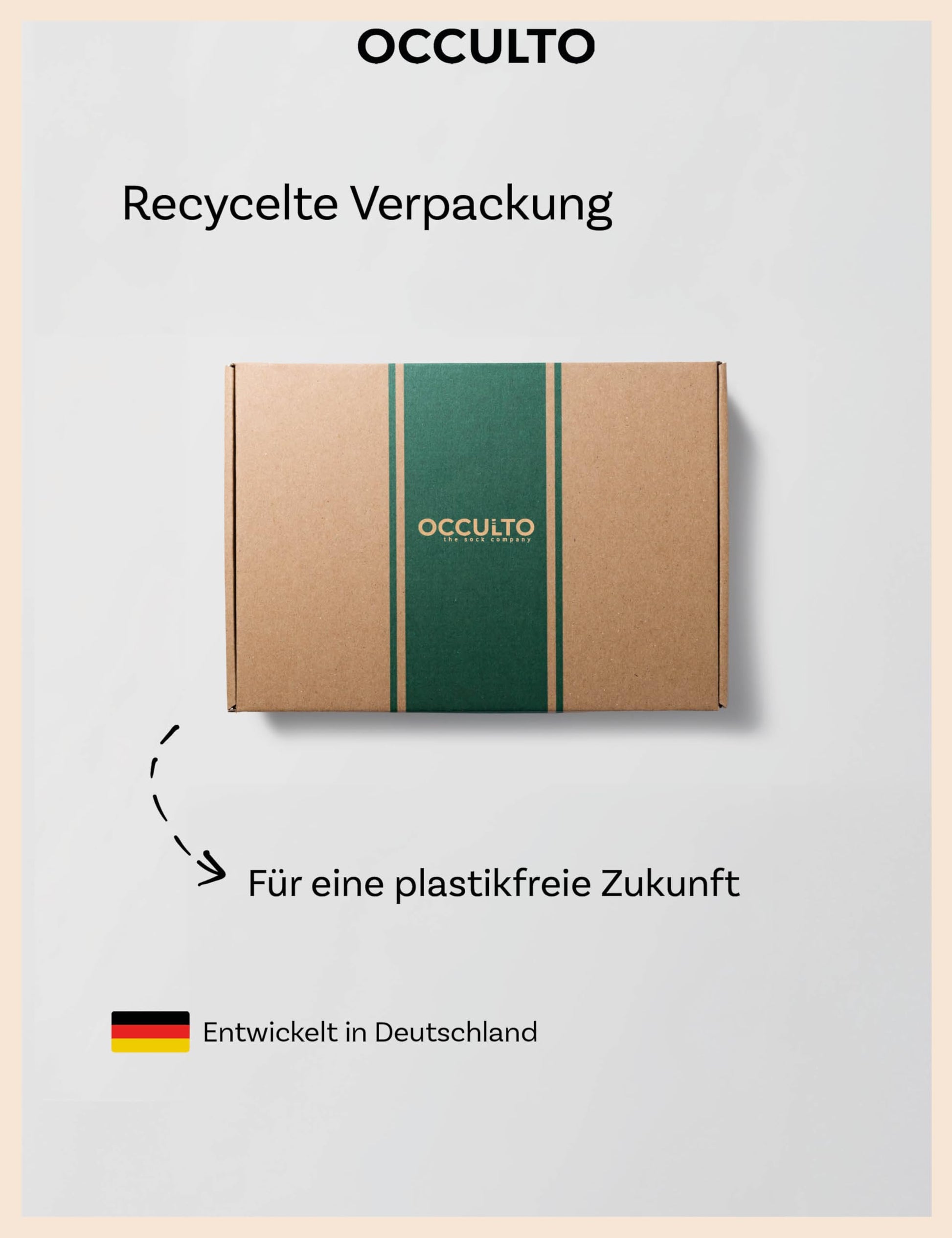 • Recycelte Verpackung: Jedes unserer Produkte wird in einer recycelten und plastikfreien Verpackung zu dir nachhause geliefert. Somit leisten wir gemeinsam unseren Beitrag zu einer umweltfreundlichen Zukunft.