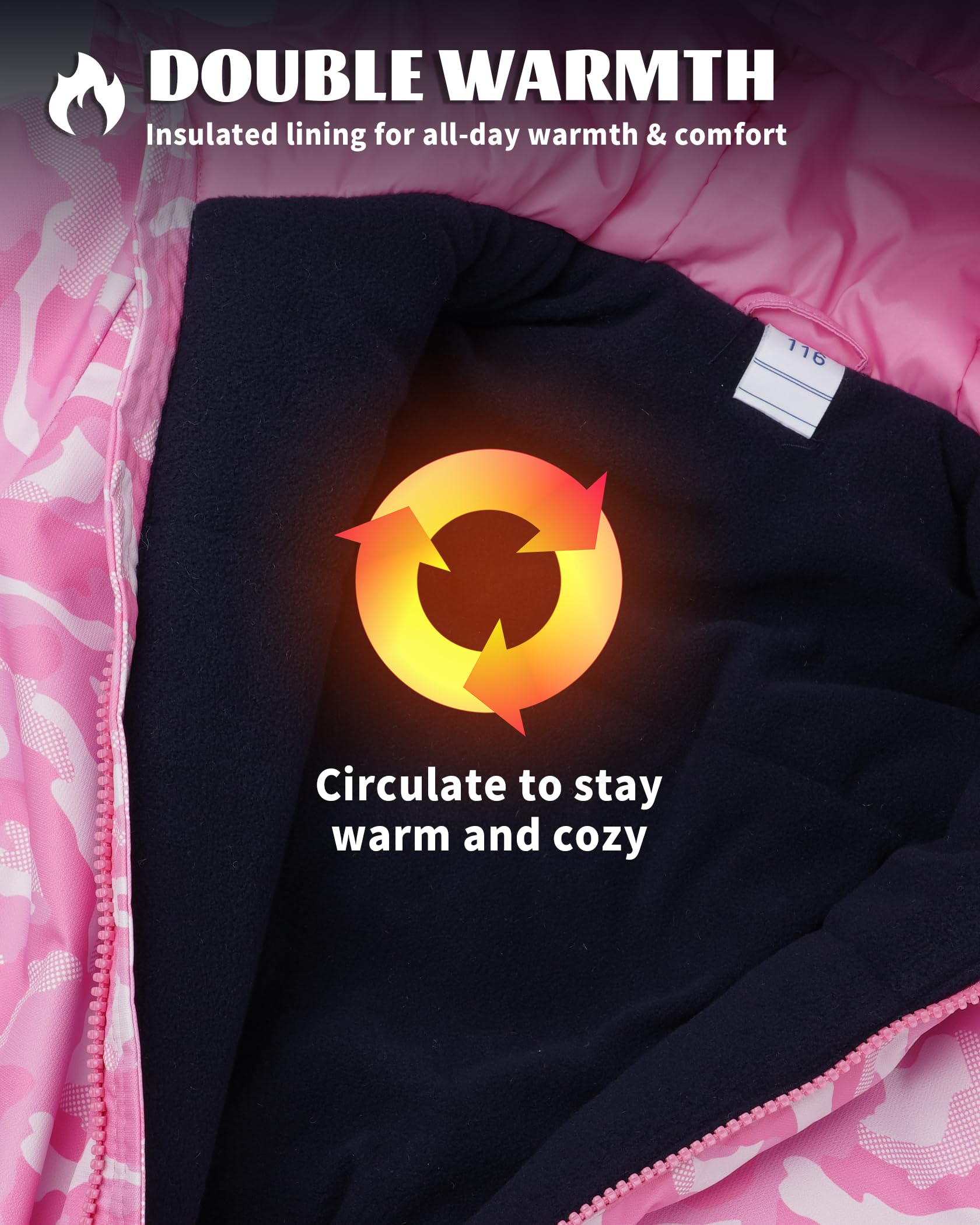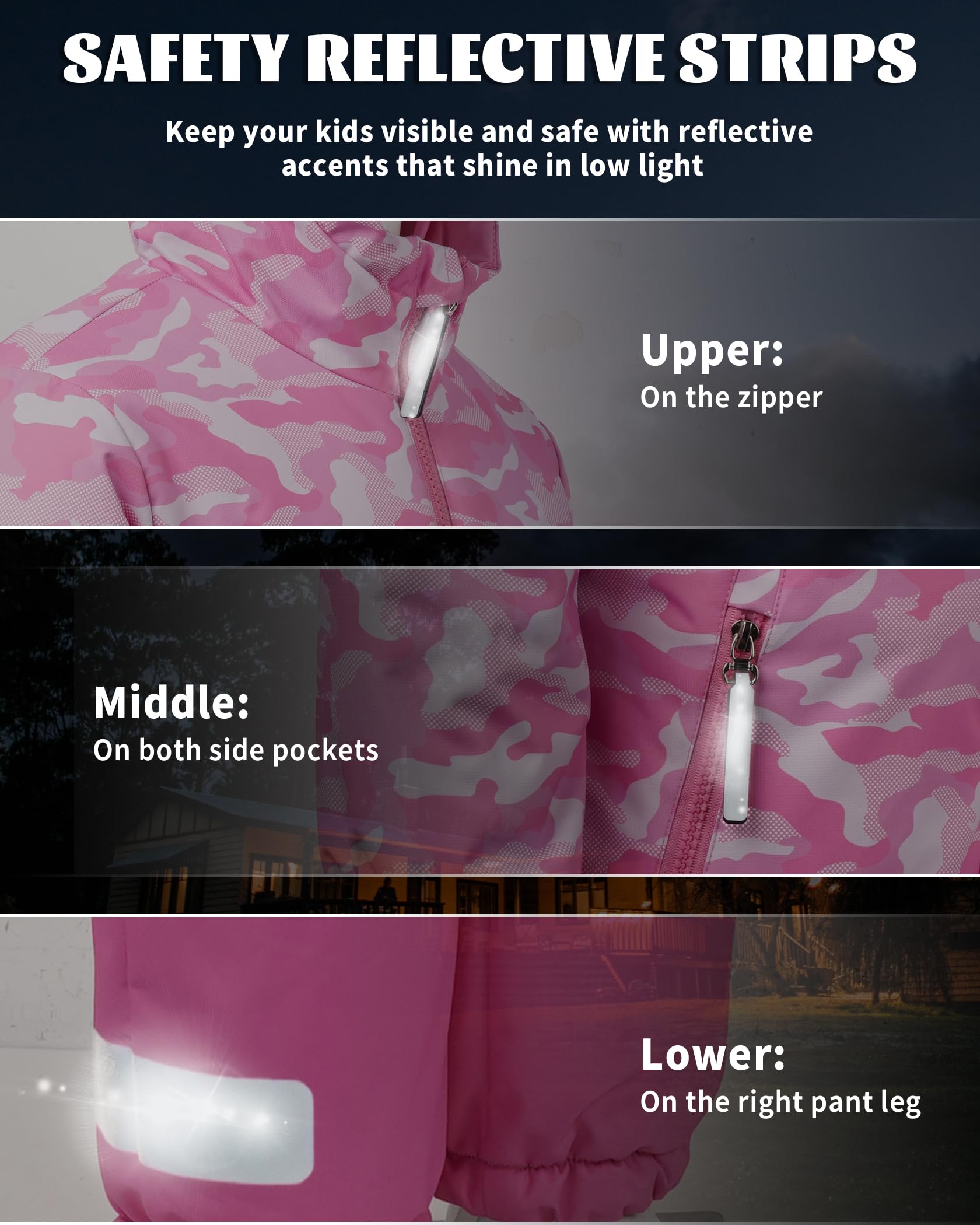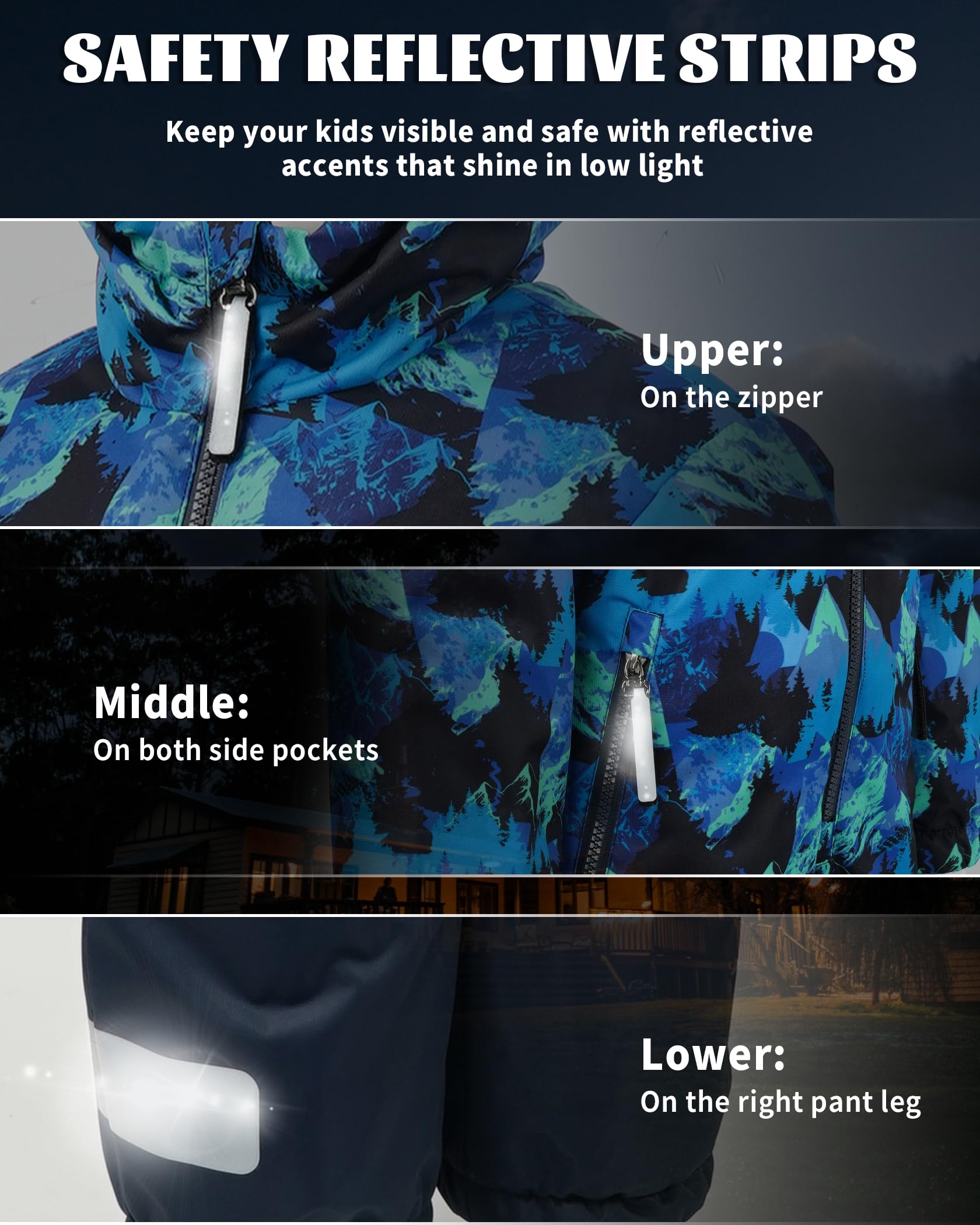 • Reflective safety: the ski jumpsuit features reflective zippers and foot reflectors that increase visibility in low light conditions and improve your child's safety.