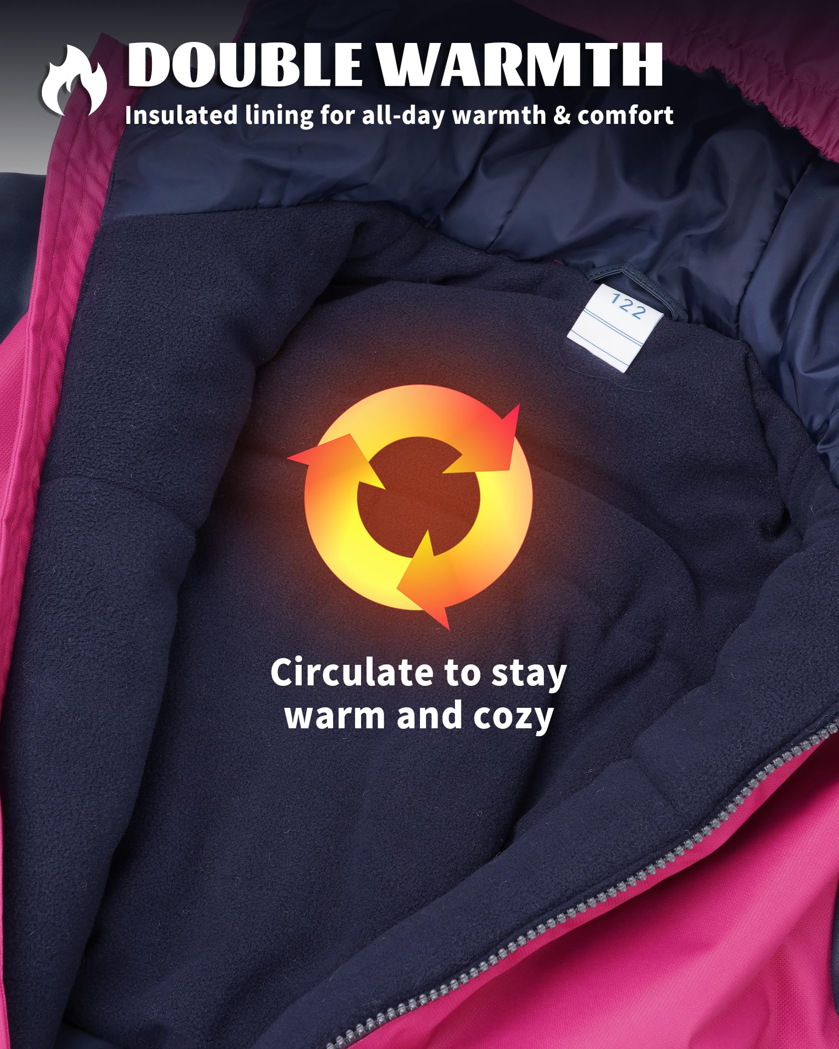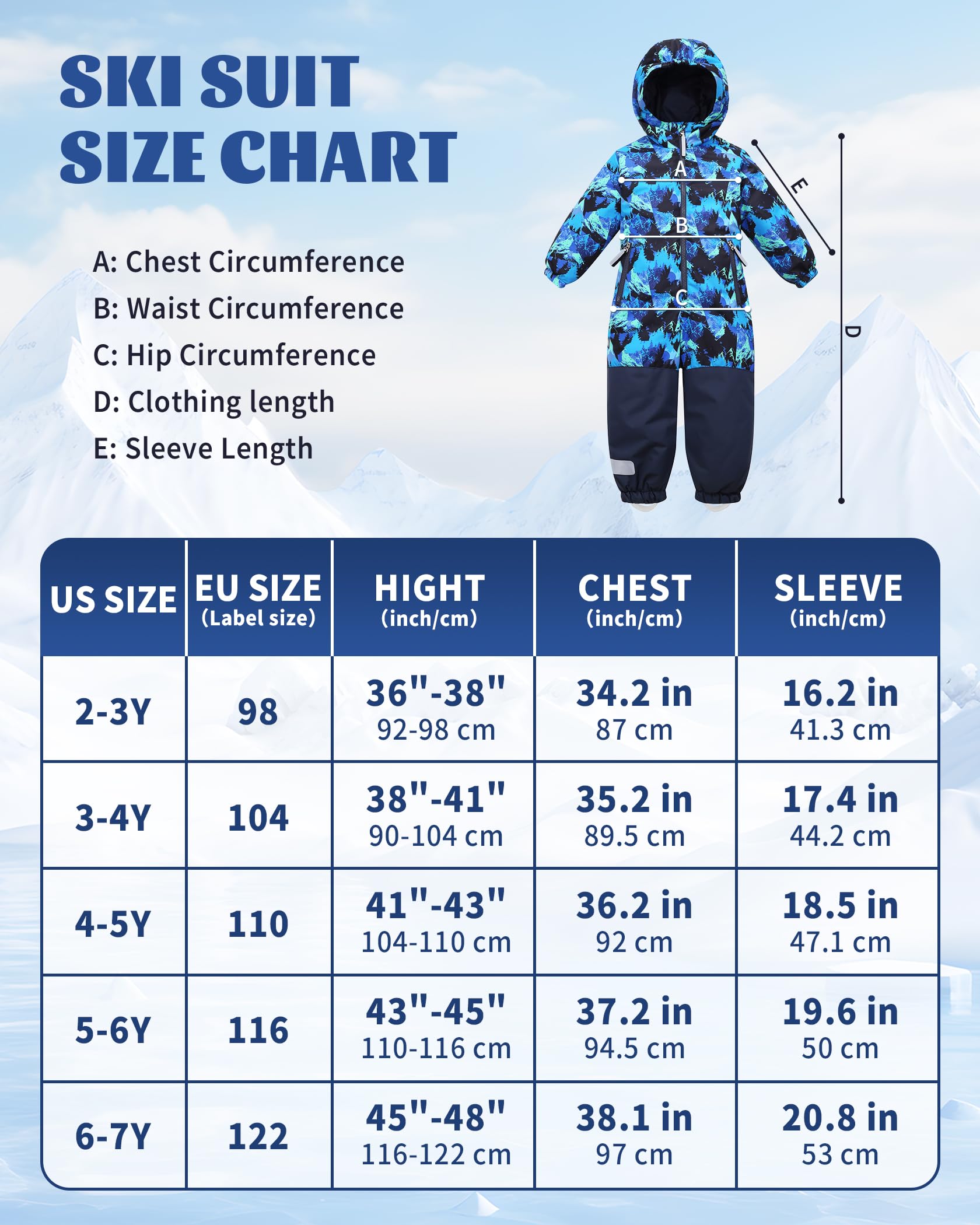 Owntop Children's Unisex Snow Suit Girls Boys Windproof Waterproof Ski Suit with Hood Zip 98-122