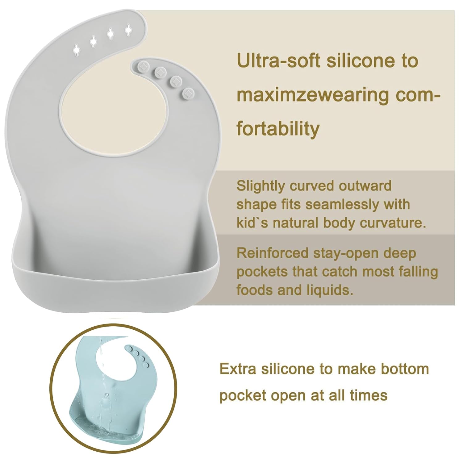• [ ROBUSTE TASCHEN ] - Die Silikontasche bleibt offen, um Krümel und Schmutz zu fangen. Unsere Silikon-Baby-Lätzchen kommen mit einer tiefen und robusten Auffangtasche, die jedes verirrte Essen oder Flüssigkeiten auffängt, leicht abwischbare Baby-Lätzchen.
