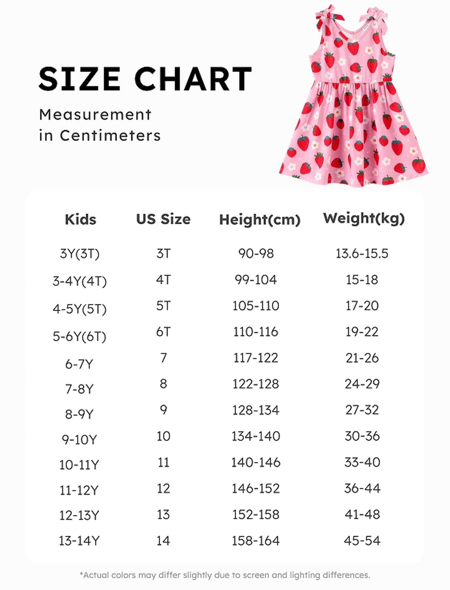 • Süße Blumen- und Streifenmuster: Mit bezaubernden Blumen- und Streifenmustern, darunter verspielte Designs wie Donuts und Erdbeeren, wird sich Ihr Kleines in diesem Sommerkleid wie eine Sommerprinzessin fühlen.