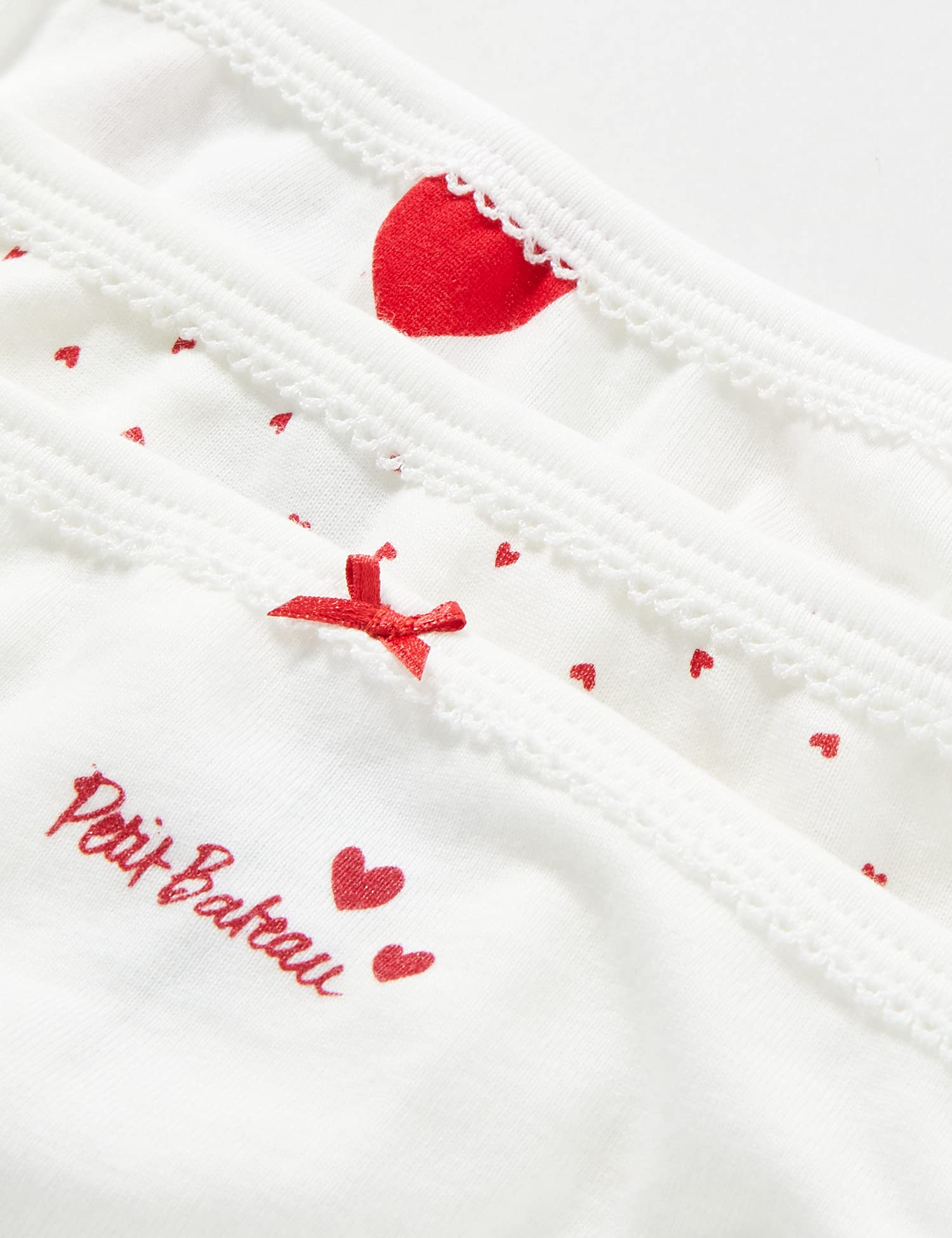 3 Stück Höschen Herz für Mädchen aus Baumwolle. 3 Höschen aus dem kultigen Material von Petit Boot. Auch als Shorty-Version erhältlich. Kombinierbar mit passenden Trägerhemden. Baumwolle aus biologischem Anbau garantiert bodenschonenden Anbau ohne Gentechnik. Durch das Anbieten dieser Baumwolle von Petit Bateau begrenzt die Auswirkungen auf den Planeten. Produkt mit dem Label Standard 100 by OEKO-TEX® CQ 746/4 IFTH garantiert hautfreundlichen Tragekomfort. 100% Bio-Baumwolle.