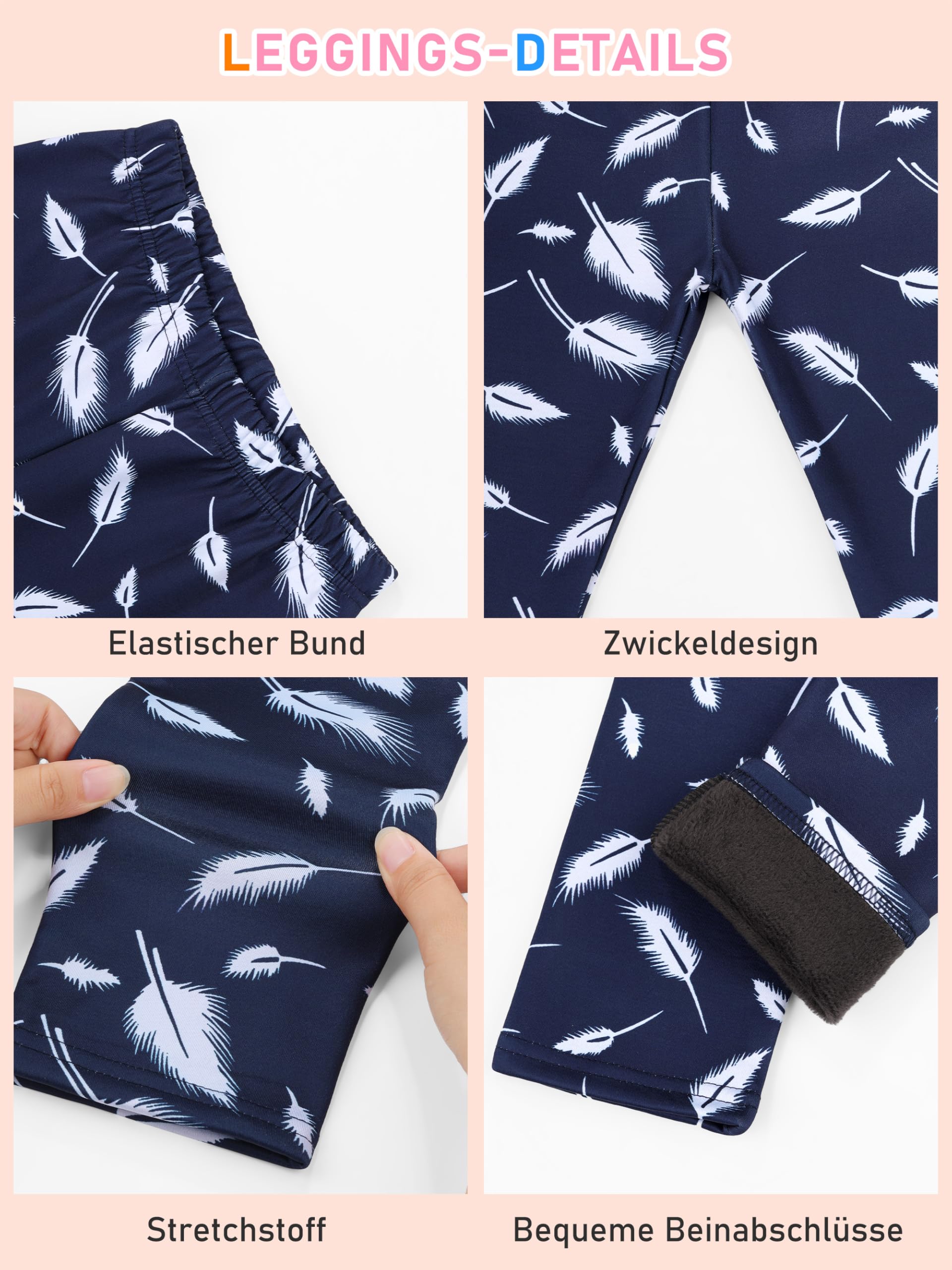 • PREMIUM MATERIAL Made of 95% polyester and 5% spandex, these leggings for girls are exceptionally soft, thick and comfortable; the added fleece lining provides excellent warmth, allowing your little one to enjoy winter to the fullest without any inconvenience or chill.