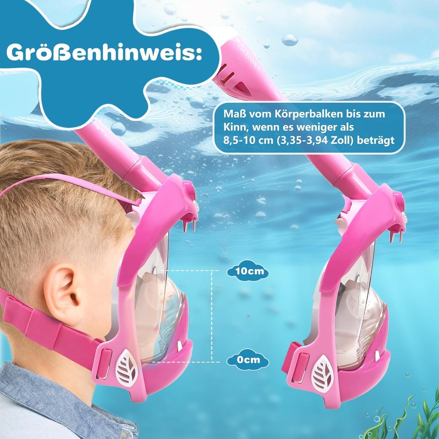 • 【Präzise Größen- und Passformempfehlung】 Geeignet für Kinder mit einem Nasen-Kinn-Abstand von 8,5–10 cm. Die richtige Passform verbessert Komfort und Sicherheit – bitte vor dem Schwimmen die Abdichtung im Pool testen.