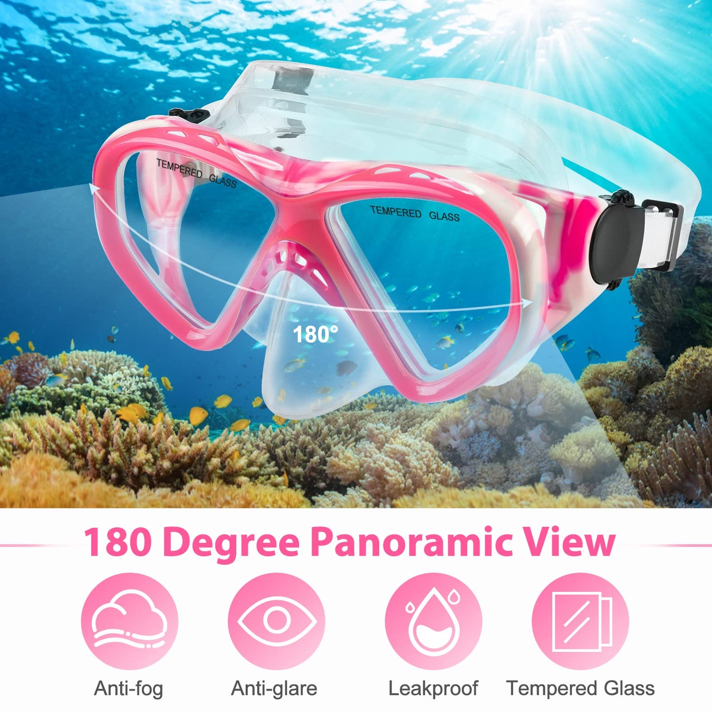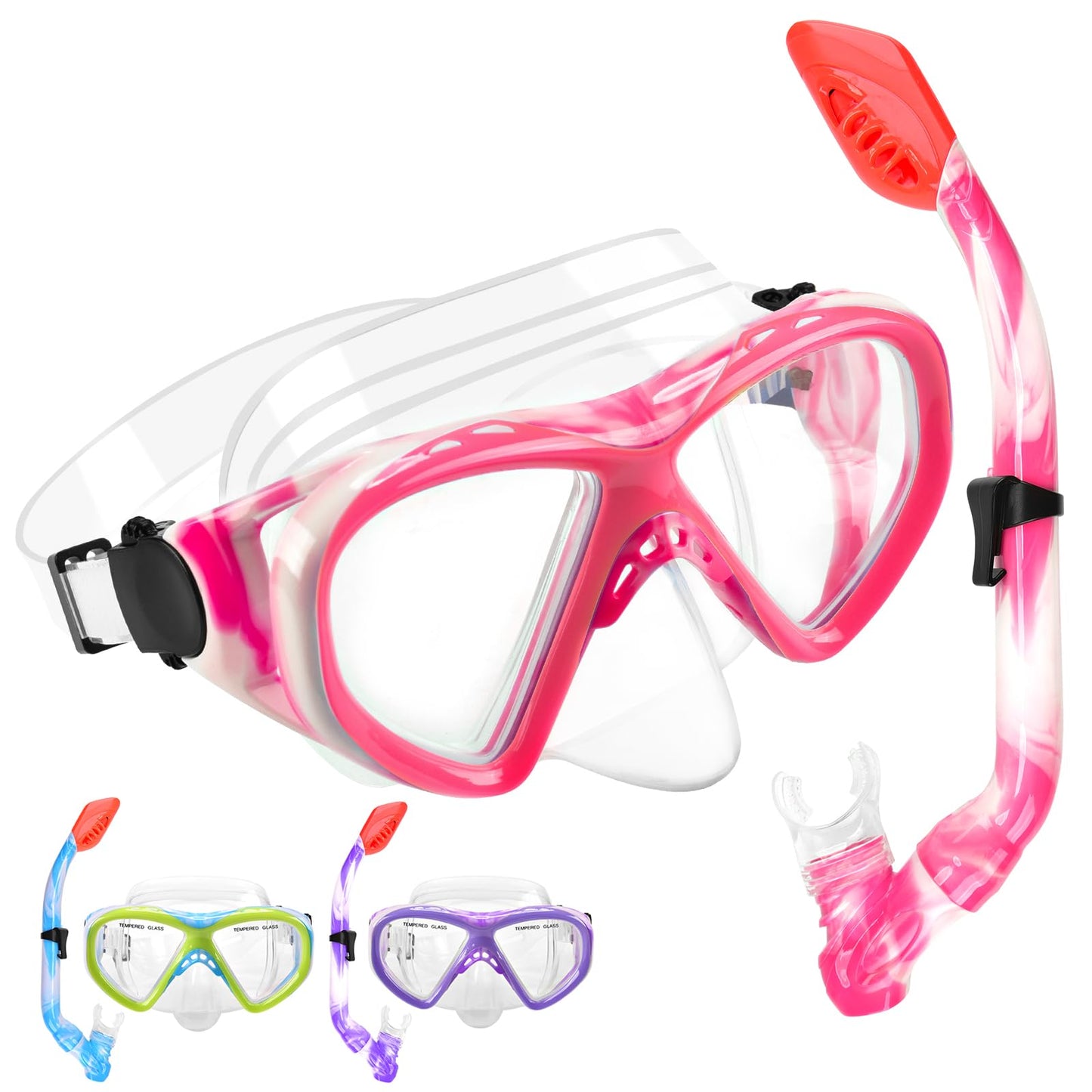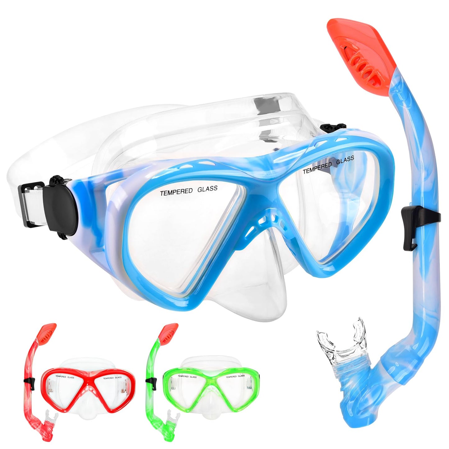 Schnorchelset Kinder - Taucherbrille Kinder mit Schnorchel Anti Leck Anti Fog HD Tauchmasken Dry Schnorchel für 4-13 Jahren Jungen Mädchen