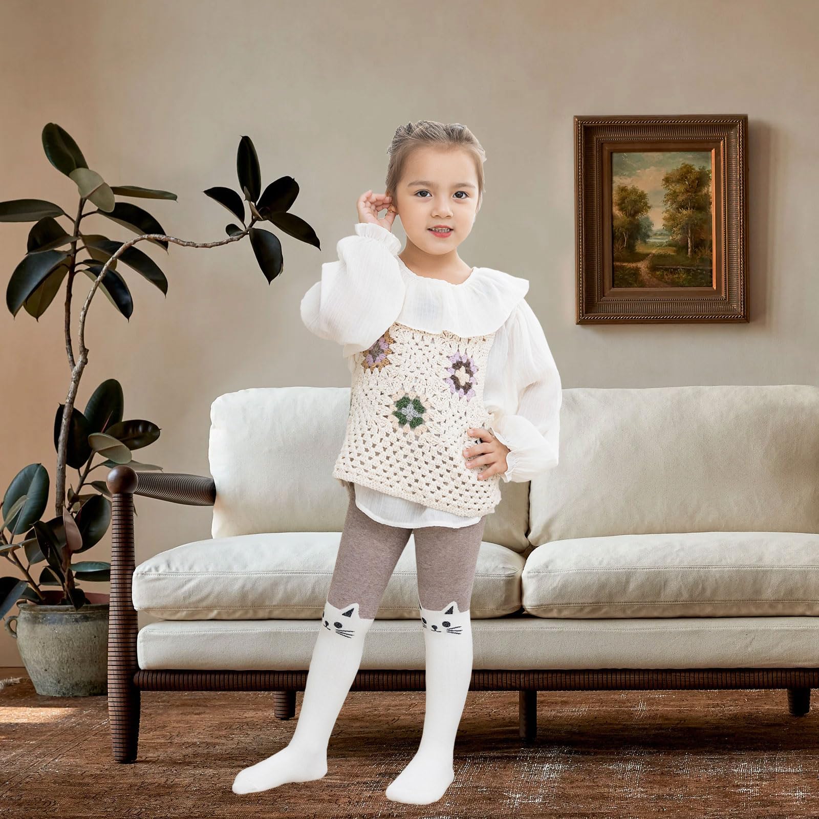 Leggings mädchen mit zweifarbigem Katzenmuster, einfach zu jedem Kleidungsstil kombinierbar, geeignet für warmes oder kaltes Wetter