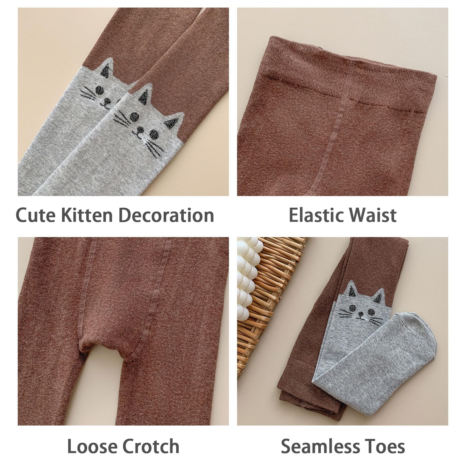 • Fashionable and warm: The thick fabric of the leggings for toddler girls can be combined with skirts and sweaters without looking bulky in winter. Whether combined with a Christmas jumper, Christmas hat or other accessories, children's tights with cute kitten decorations add extra sparkle and fun to the festive looks of little girls.