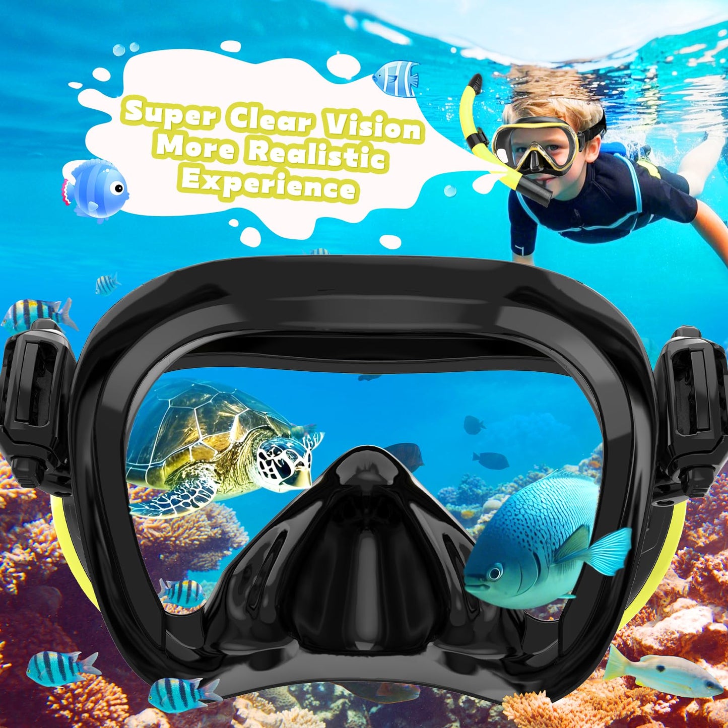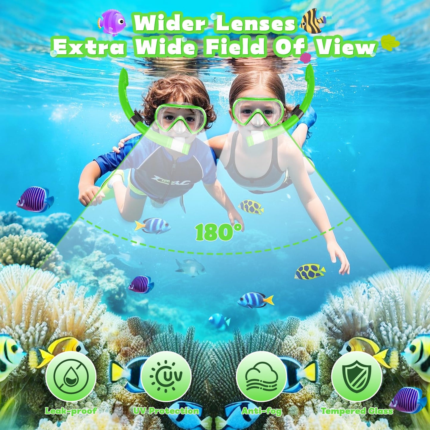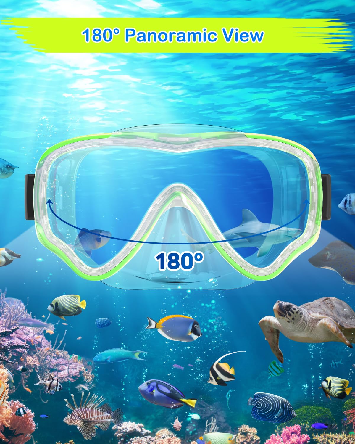 SkrekuiMa Taucherbrille Kinder | Schwimmbrille Kinder Schnorchelmaske Anti-Fog Anti-Leck | Tauchmaske Kinder 180°Panorama HD Tempered Glas für Kinder 4-12 Jahre Jungen Mädchen