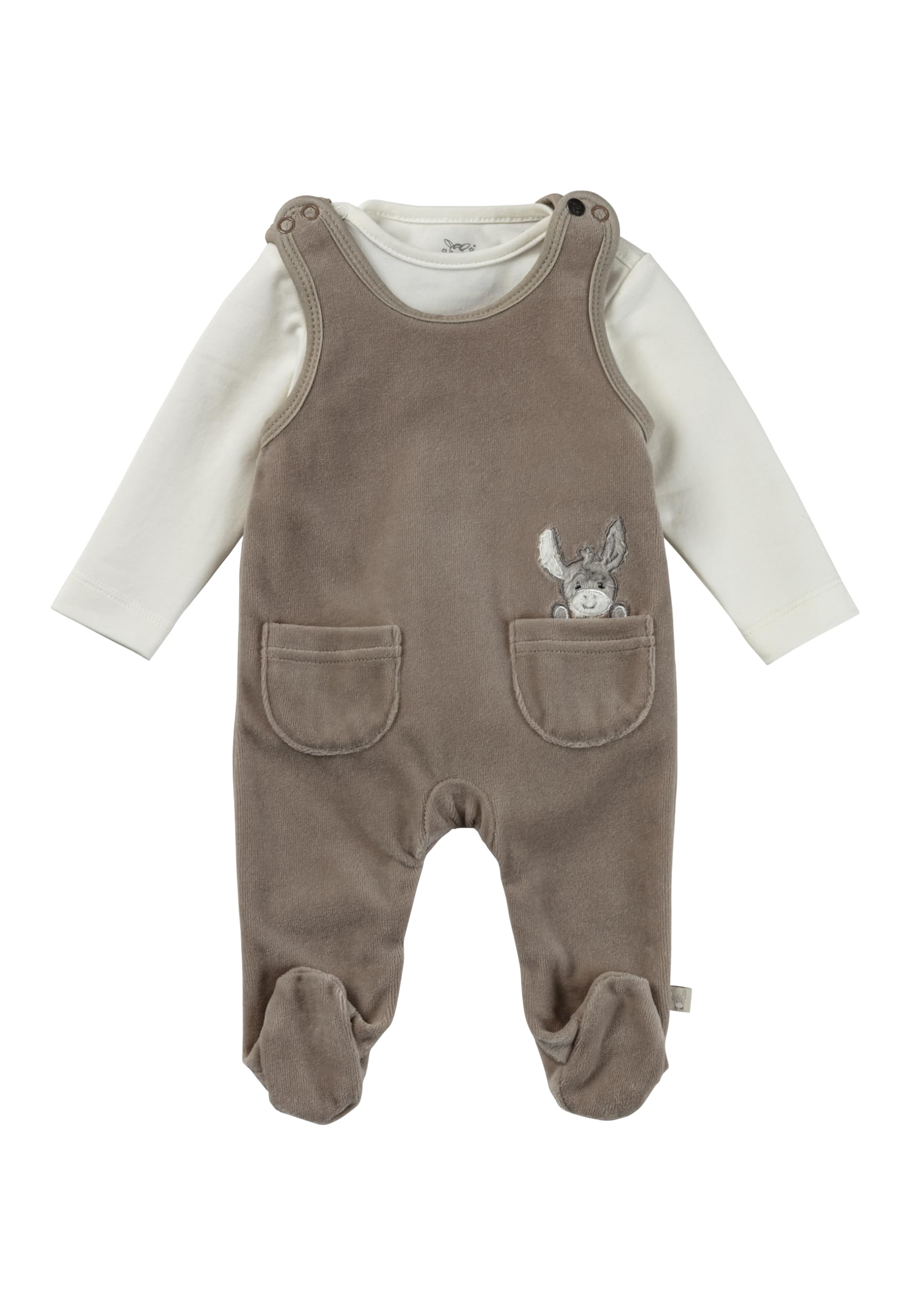 Sterntaler Strampler Set Emmi - Baby Strampler aus Nicki mit Esel Emmi Applikation - mit Langarm Shirt - Drucknöpfe im Schritt - bequemer Unisex Zweiteiler ab Geburt