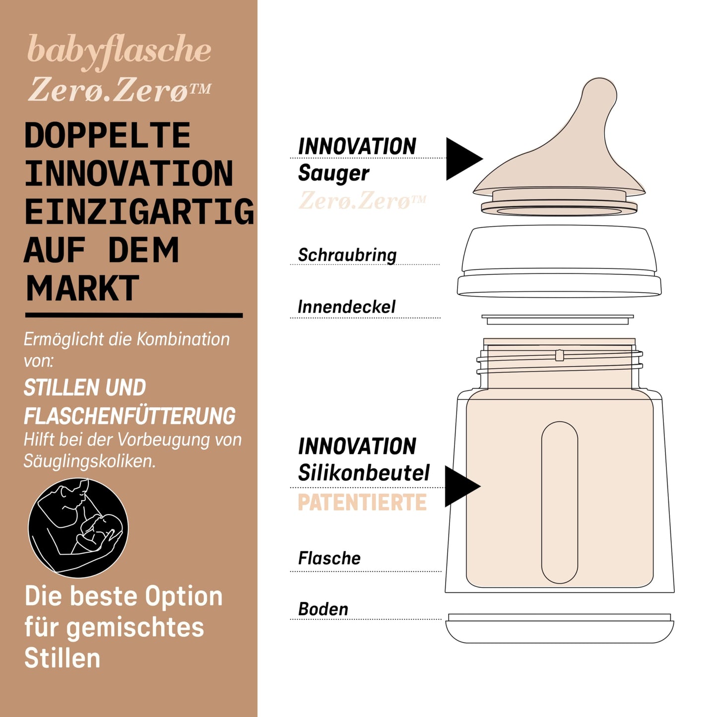 Zero Zero Babyflasche, 8 Vorteile in einem:
