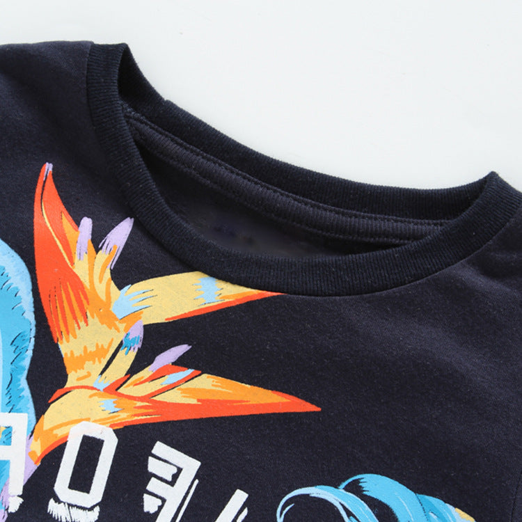 Summer Baby Kids Cool Leaves and Letters Pattern T-shirt and Shorts Clothing Set for Boys