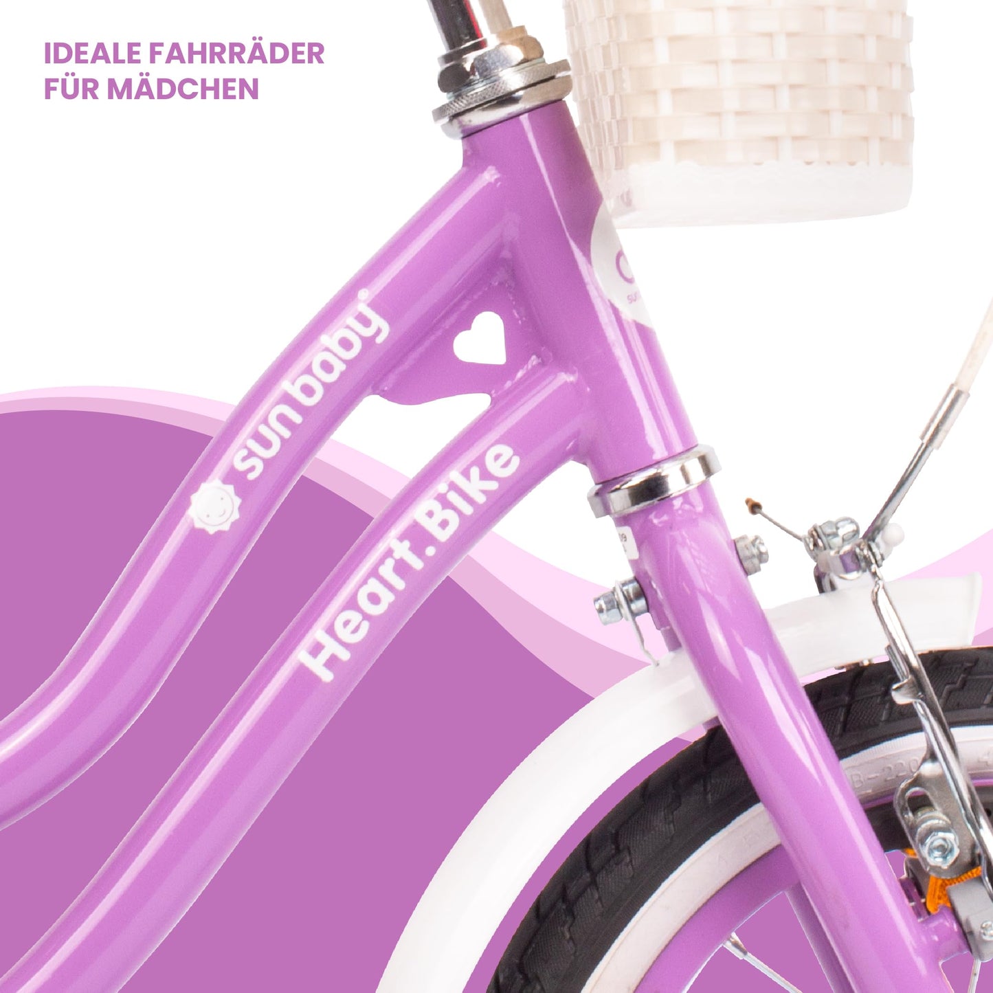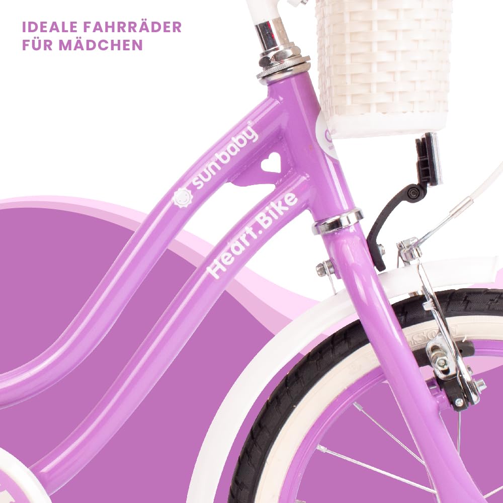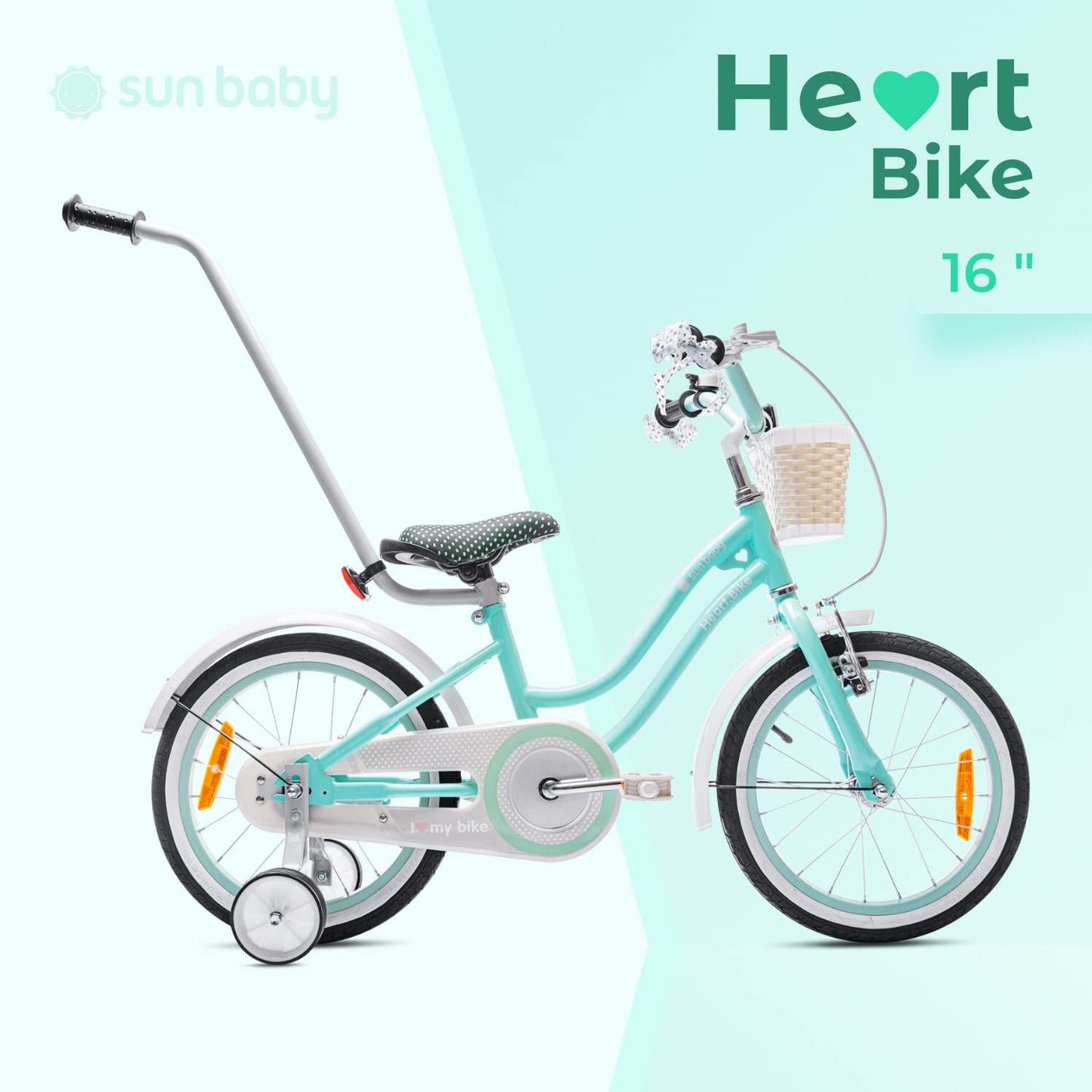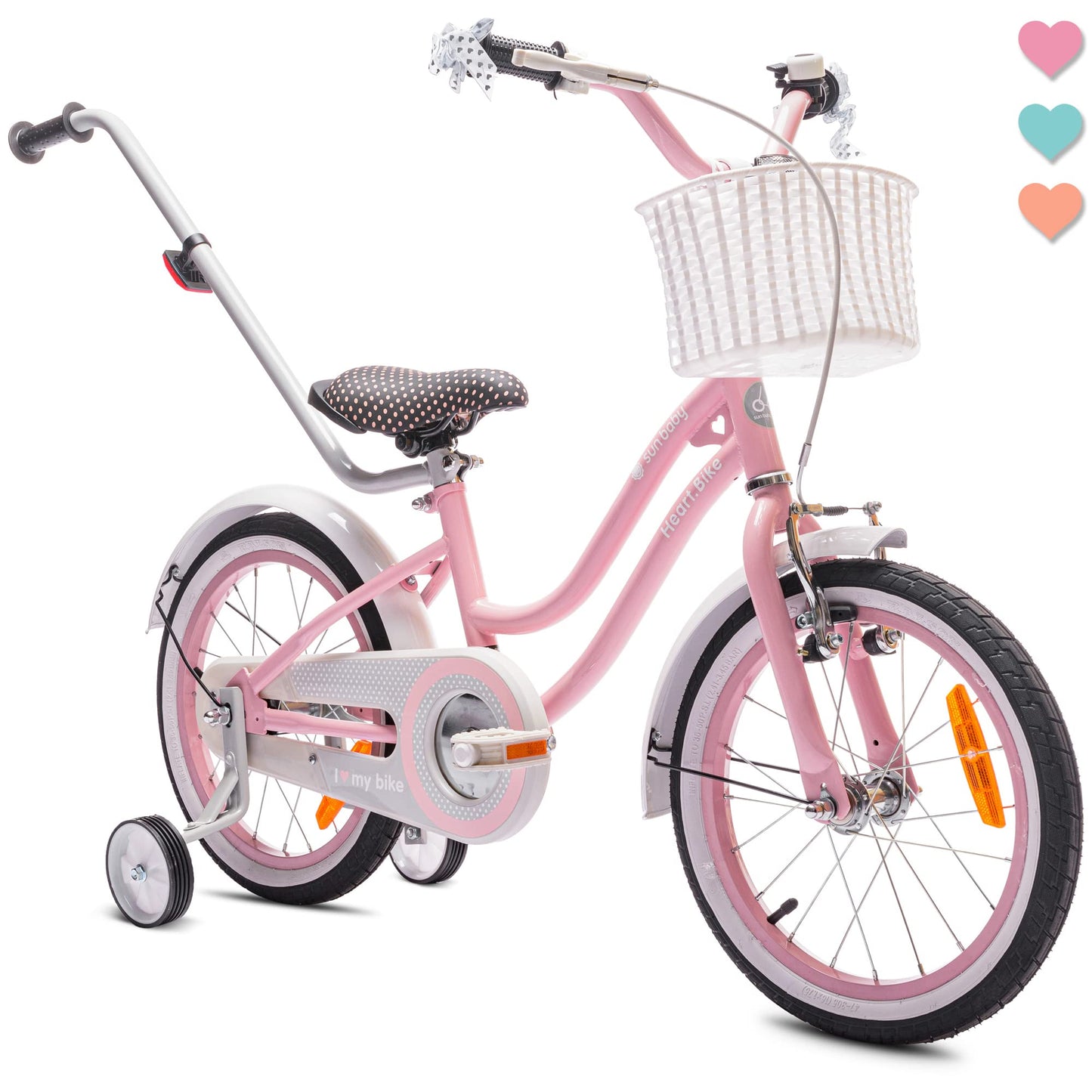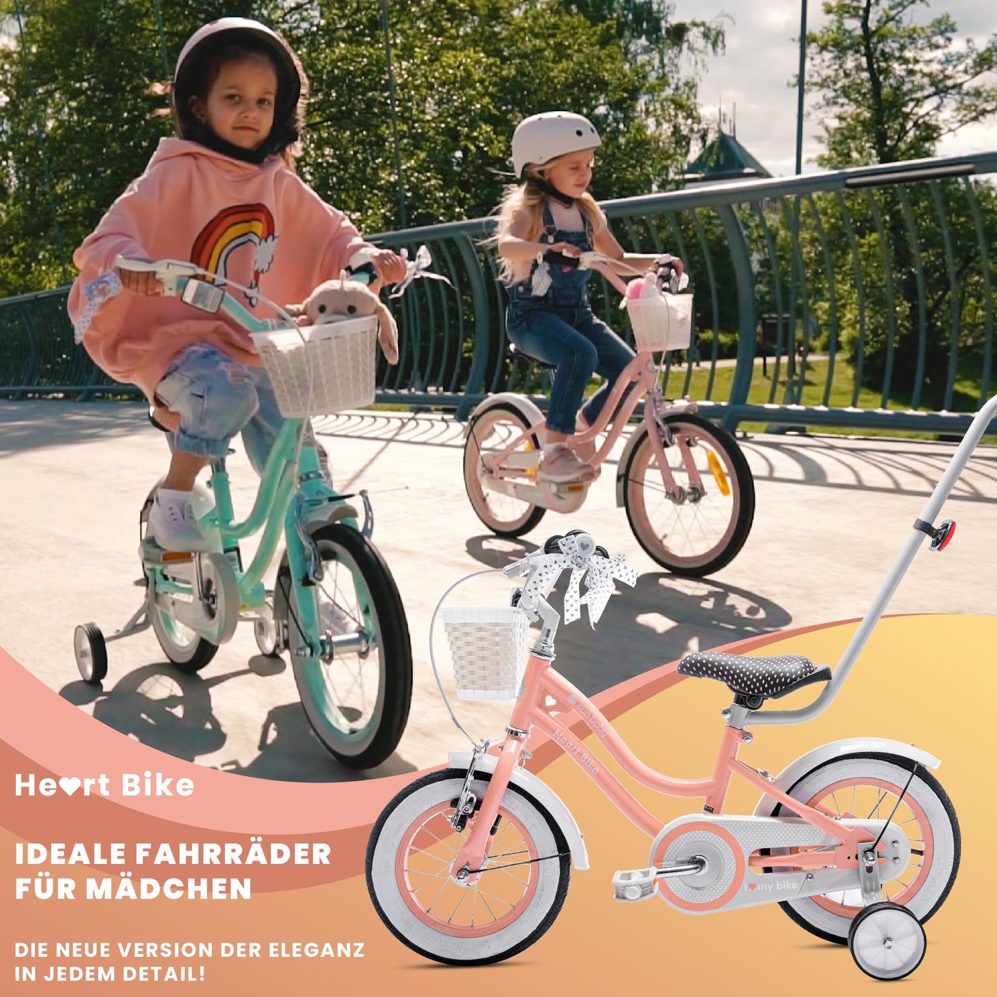 sun baby Mädchenfahrrad 12, 14 und 16 Zoll Radgröße Heart Bike zur Auswahl, mit Abnehmbarer Schubstange, Kinderfahrrad für Mädchen von 2 bis 6 Jahre