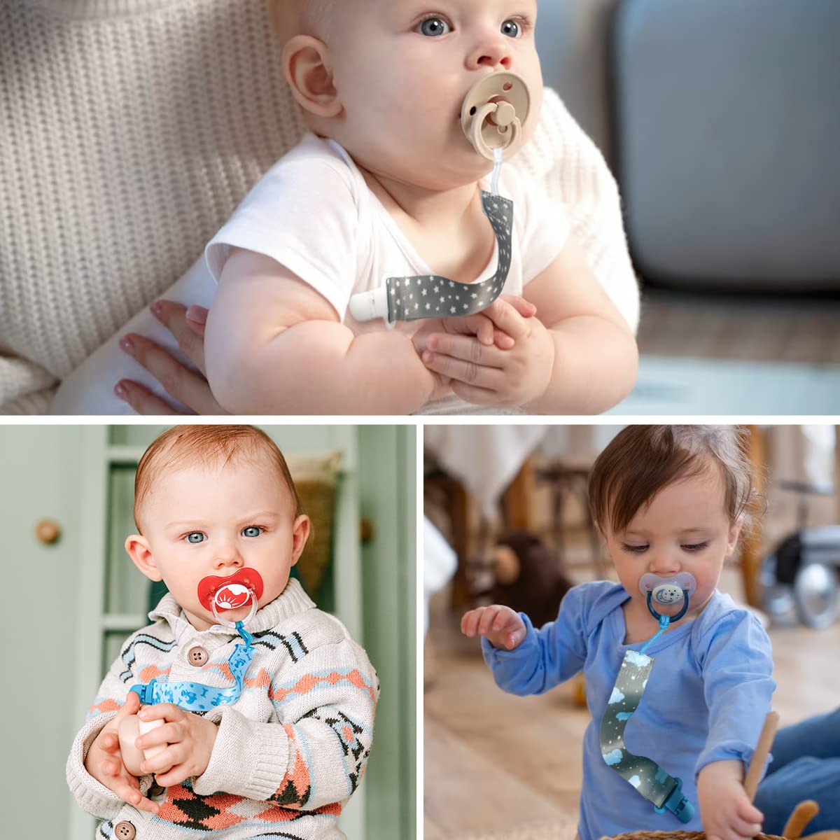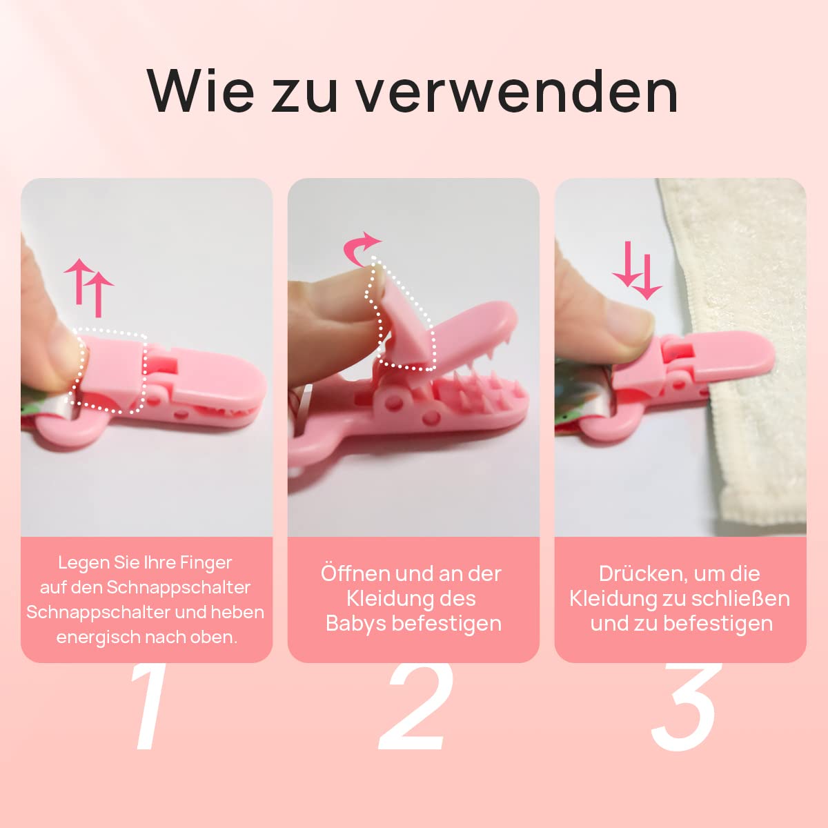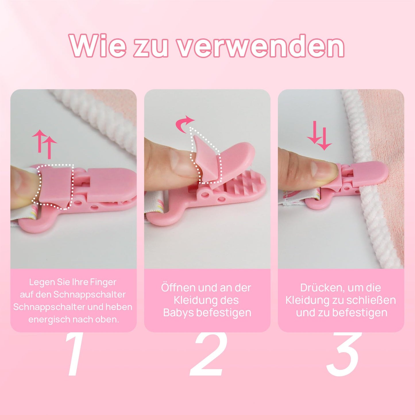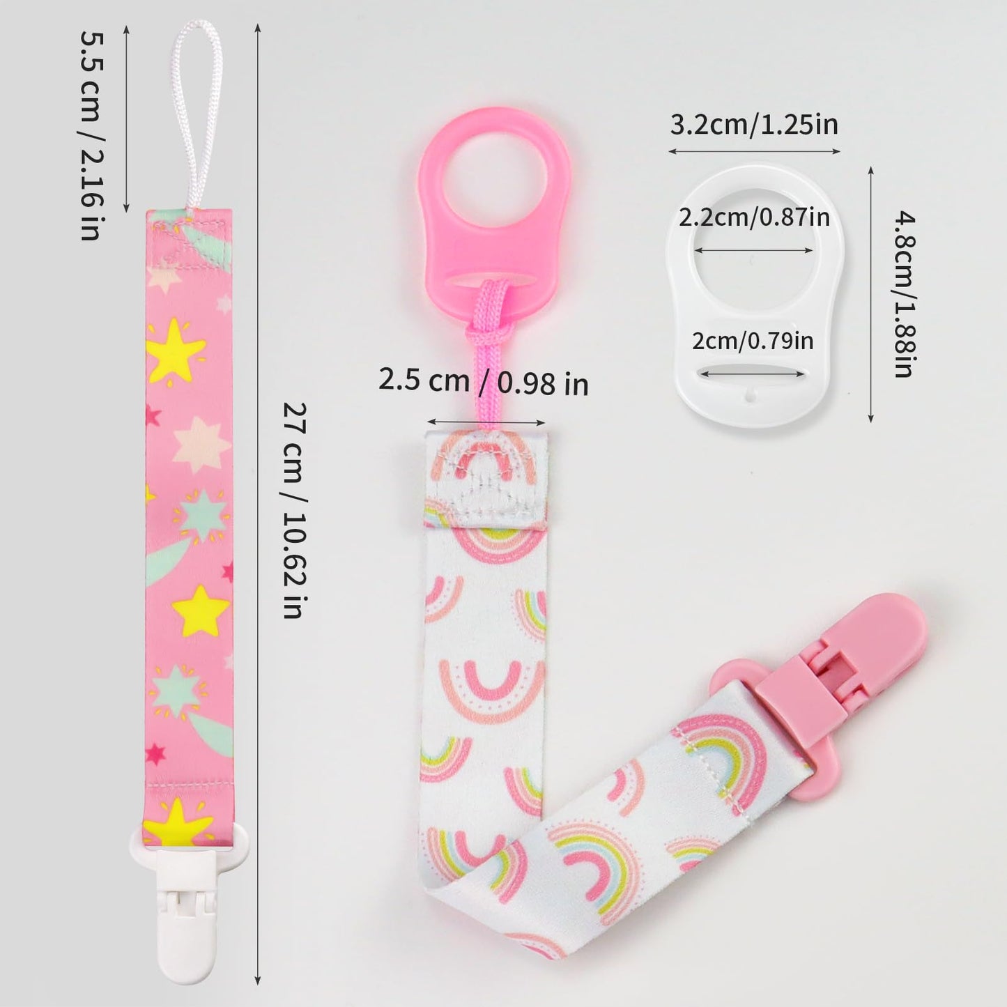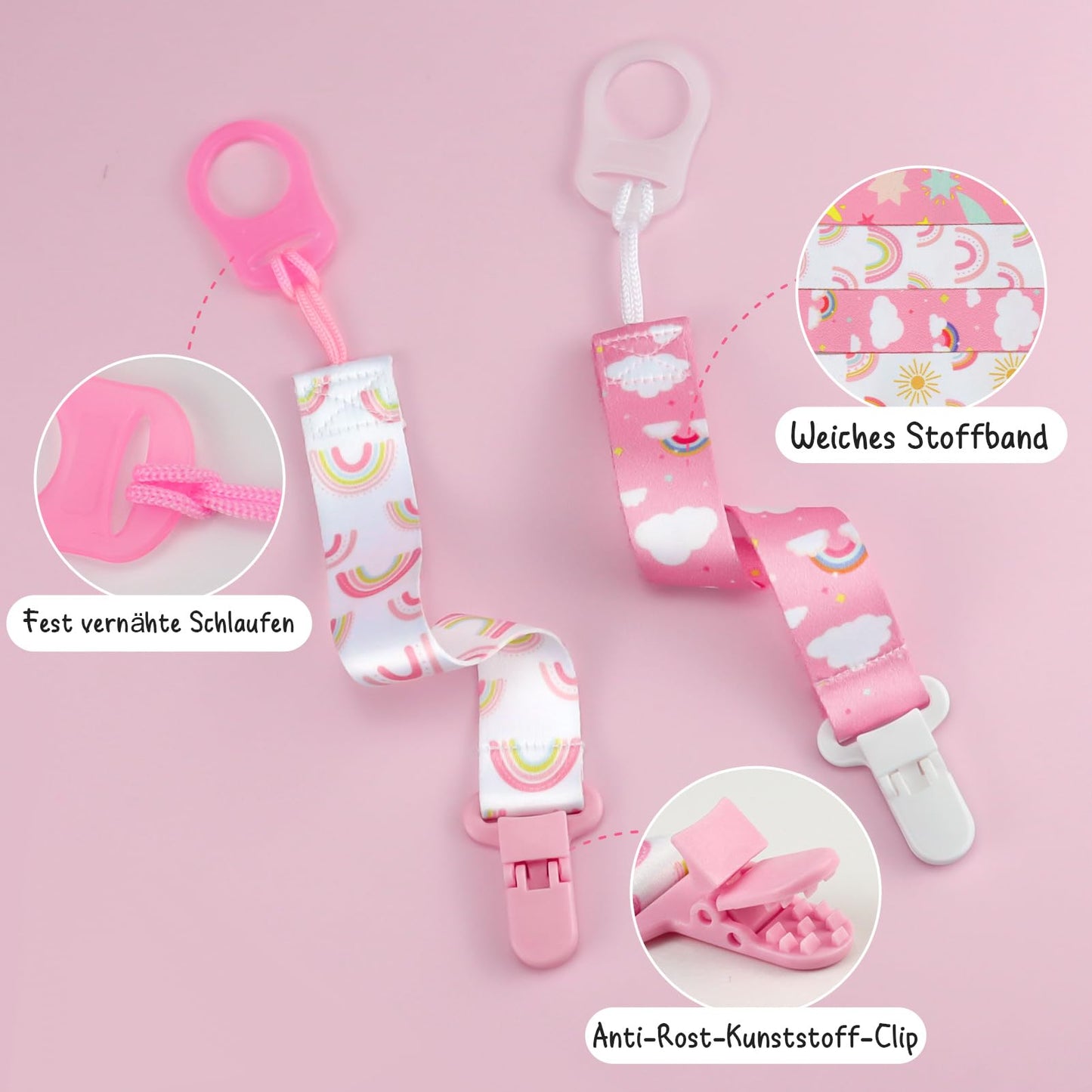 Suofuolef 4 Pack Schnullerkette Baby Mädchen, Baby Schnullerband Set mit Adaptern, Schnuller Clips für Neugeborenen Geburt & Taufe Geschenk, Rose