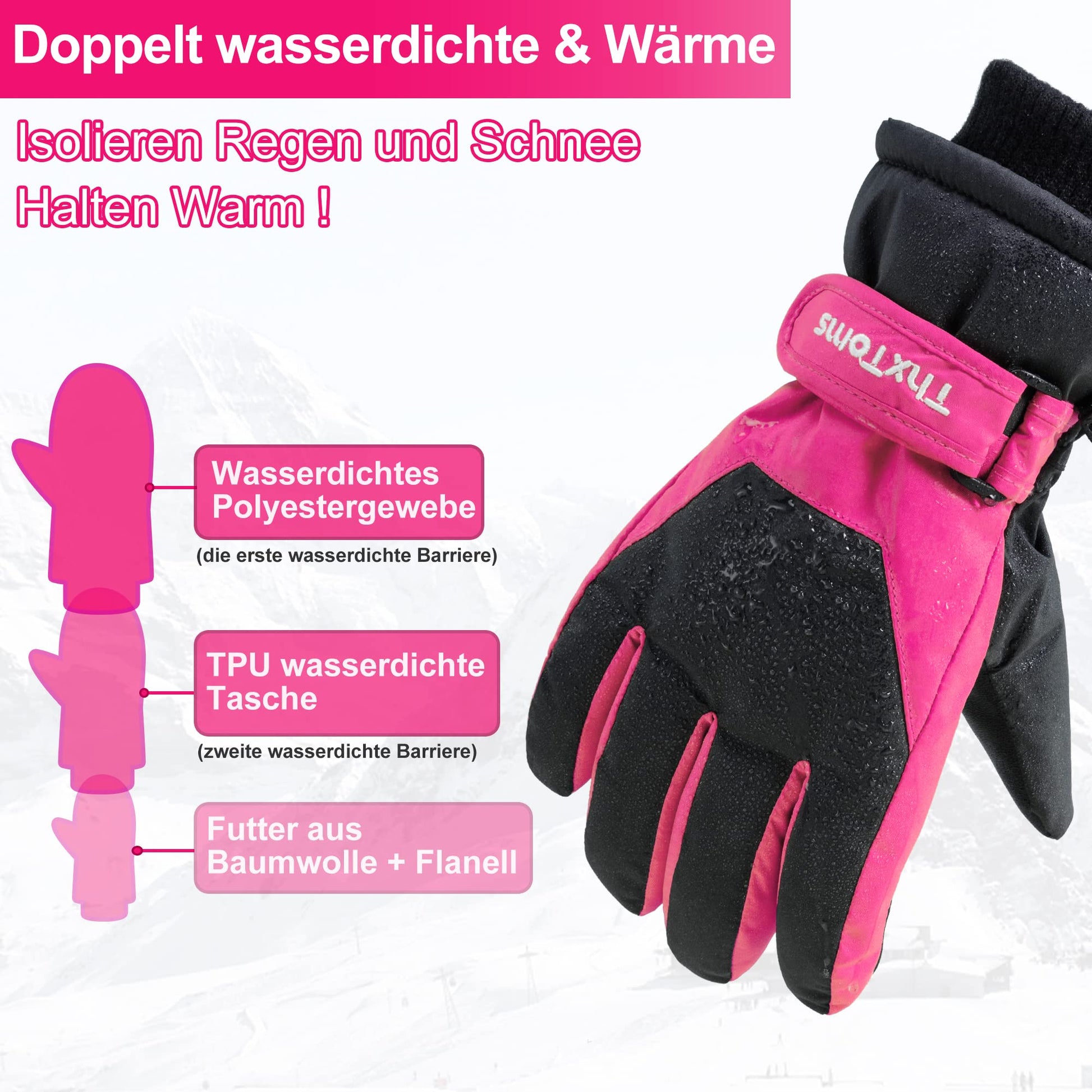 ThxToms Children's Ski Gloves, Winter Snow Ski Gloves, -15°C, Windproof, Waterproof, Warm, PU Thickened Cold Weather, Outdoor Sports, Snowboarding, Skiing, Bike, for Boys and Girls aged 3-13 Years Old