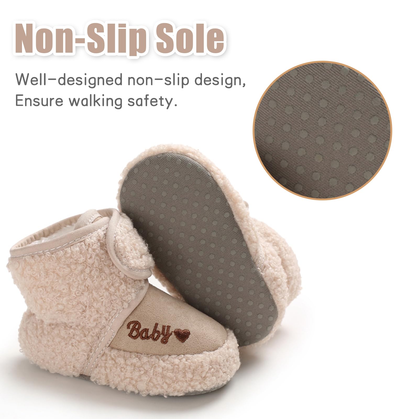 TMEOG Baby Winter Shoes Thermal Baby Shoes Crawling Shoes Fleece Baby Boots Non-Slip Warm Booties Baby Boots Lined Newborn Walk Shoes for Girls Boys 0-18 Months
