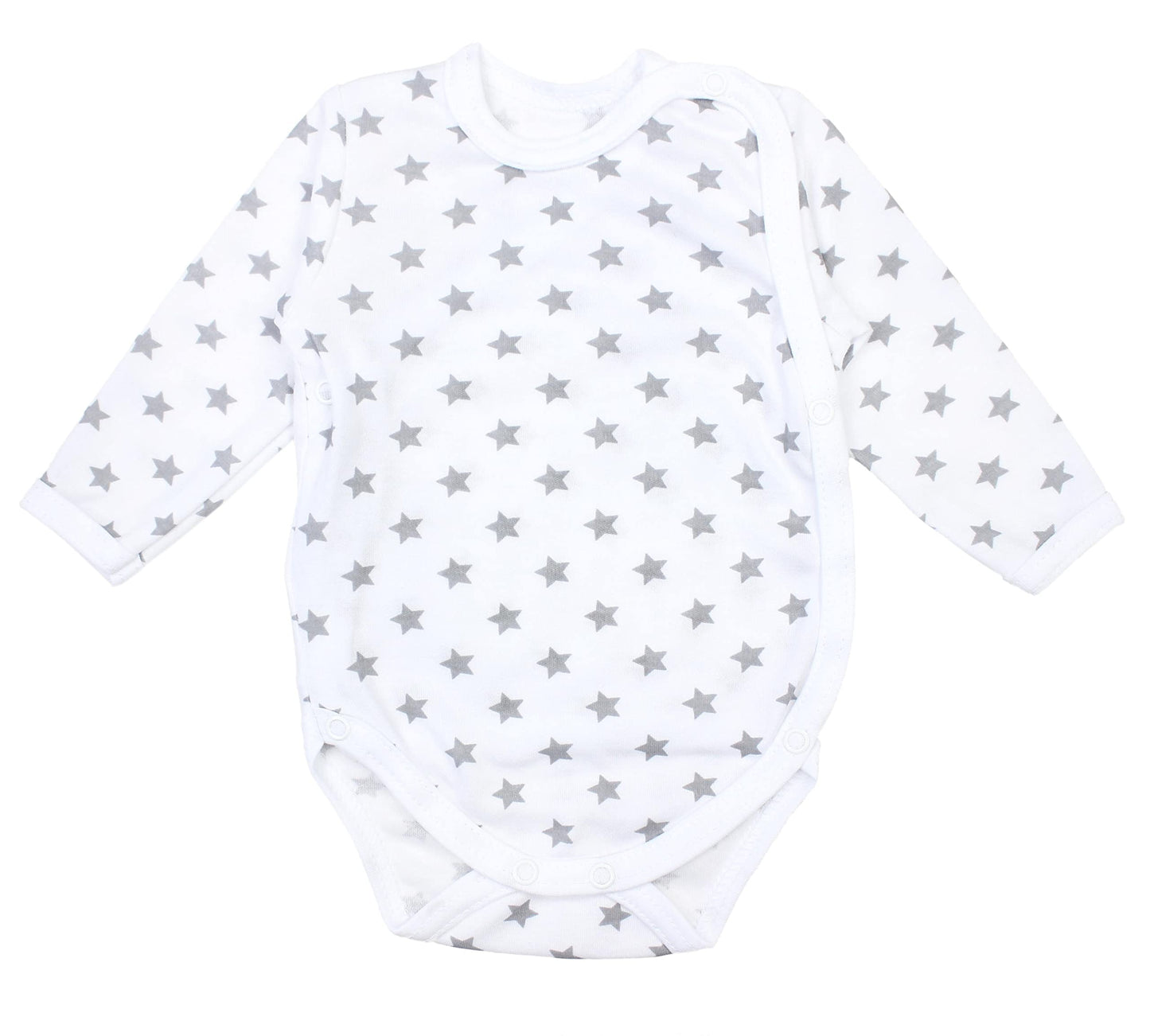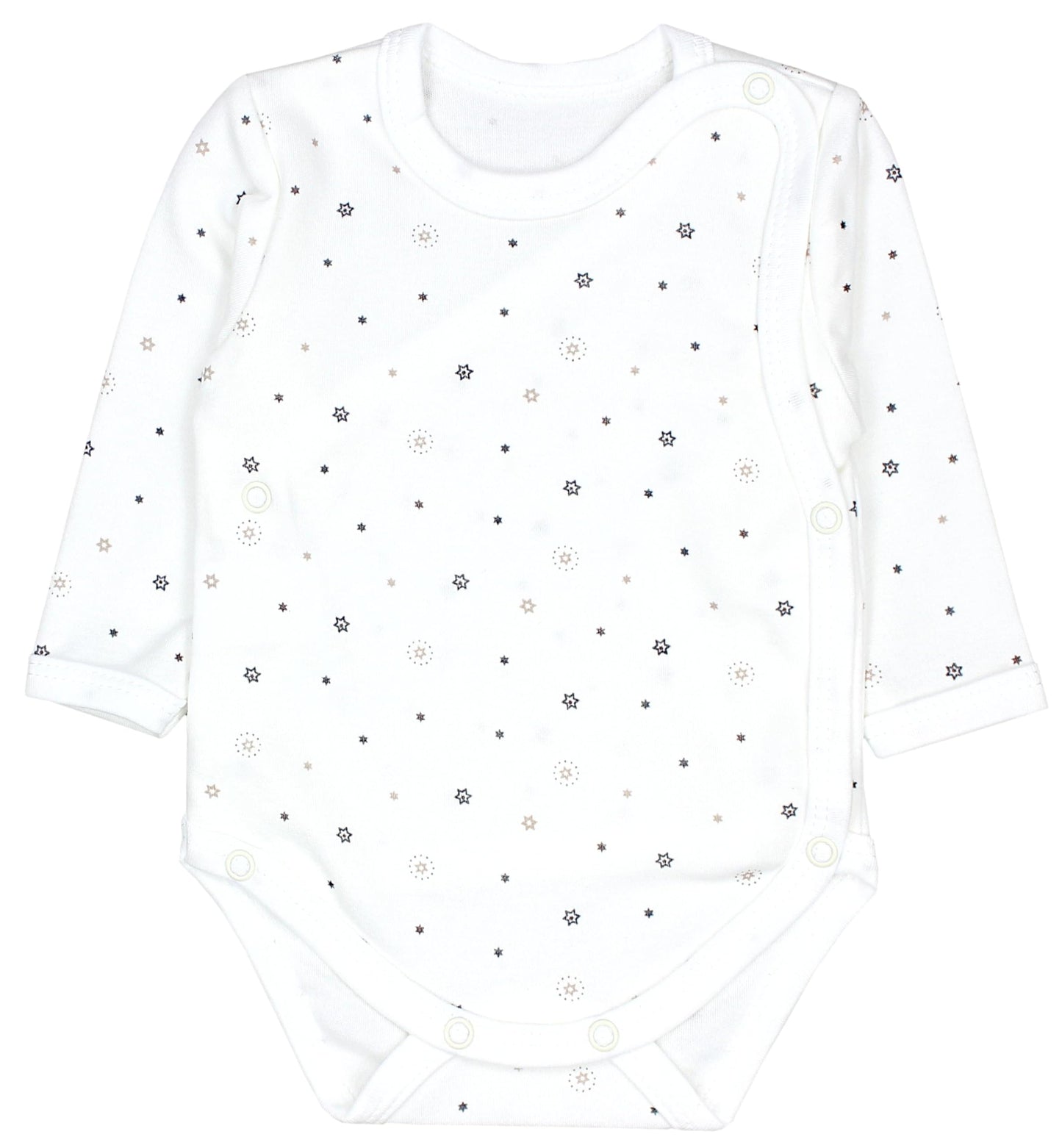 • BABY BODY LANGARM IM VORTEILSSET – 5er Pack mit 2 Unifarben (Weiß, Dunkelblau) und 3 Prints (Sterne Grau, Weiß, Streifen Dunkelblau), für Jungs und Mädchen geeignet.